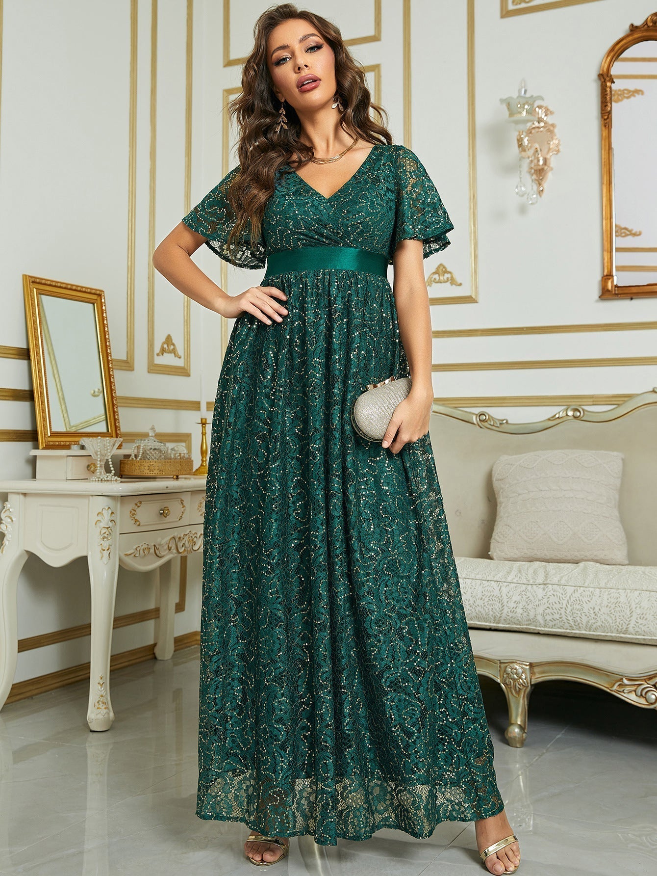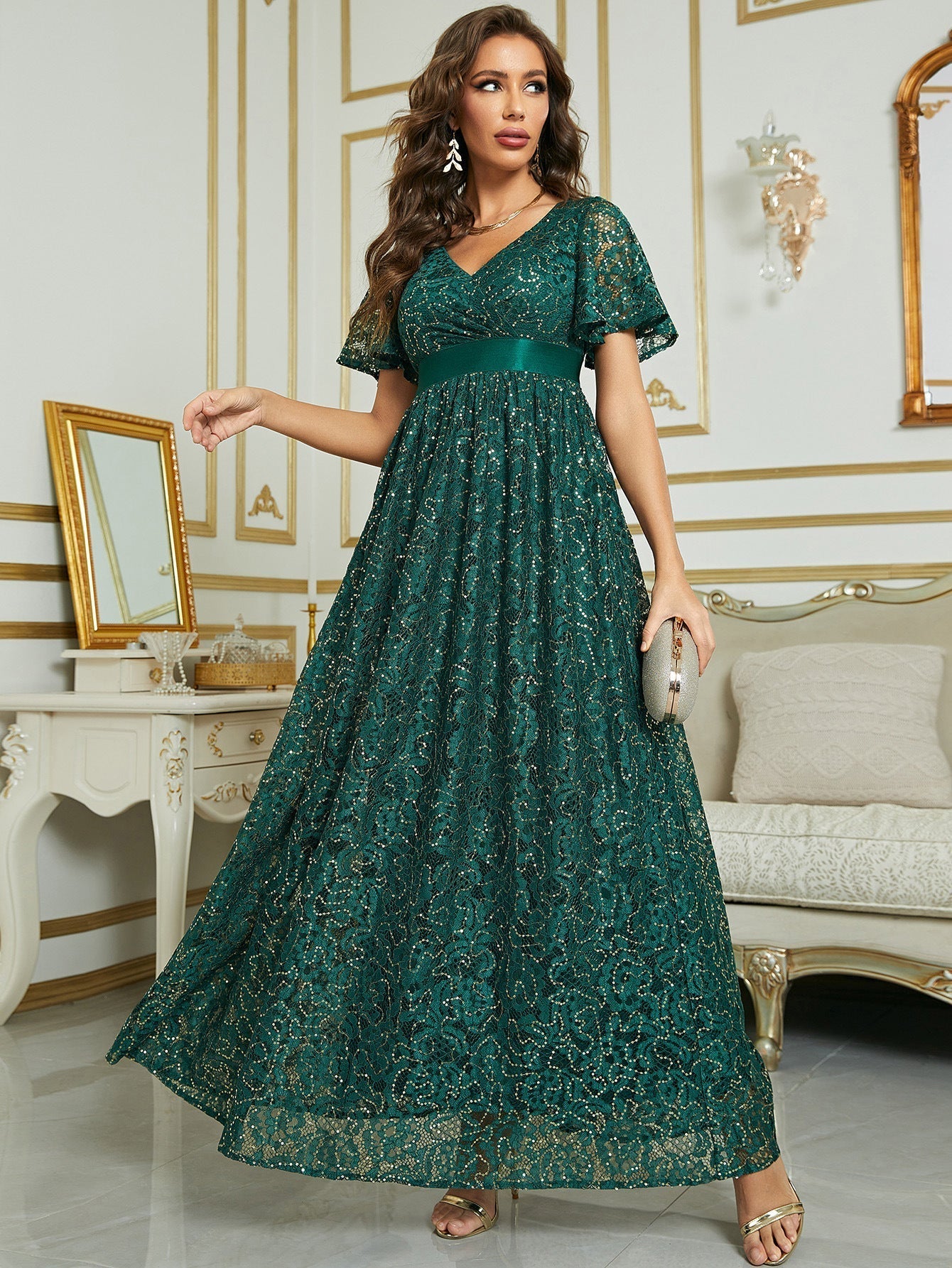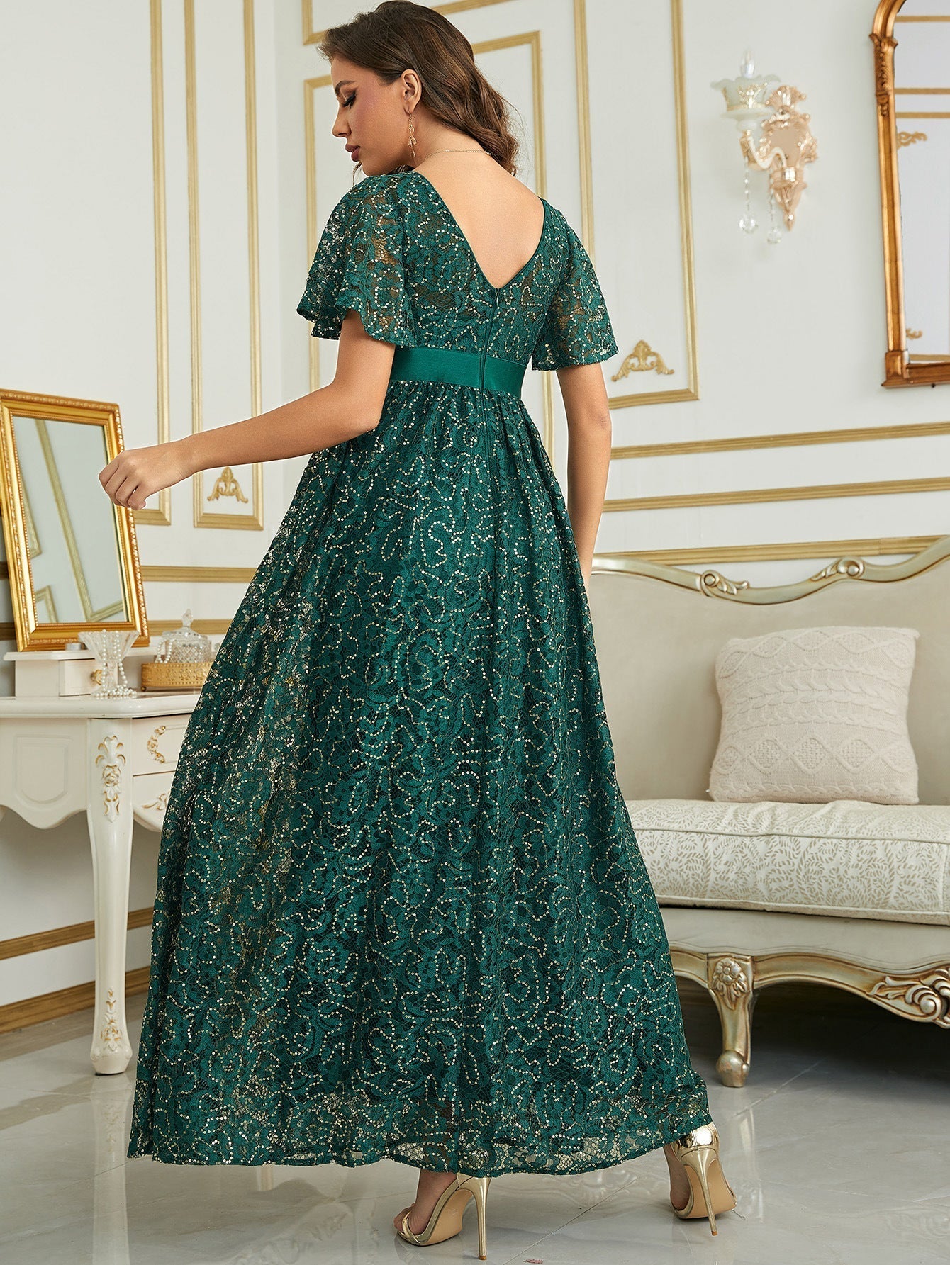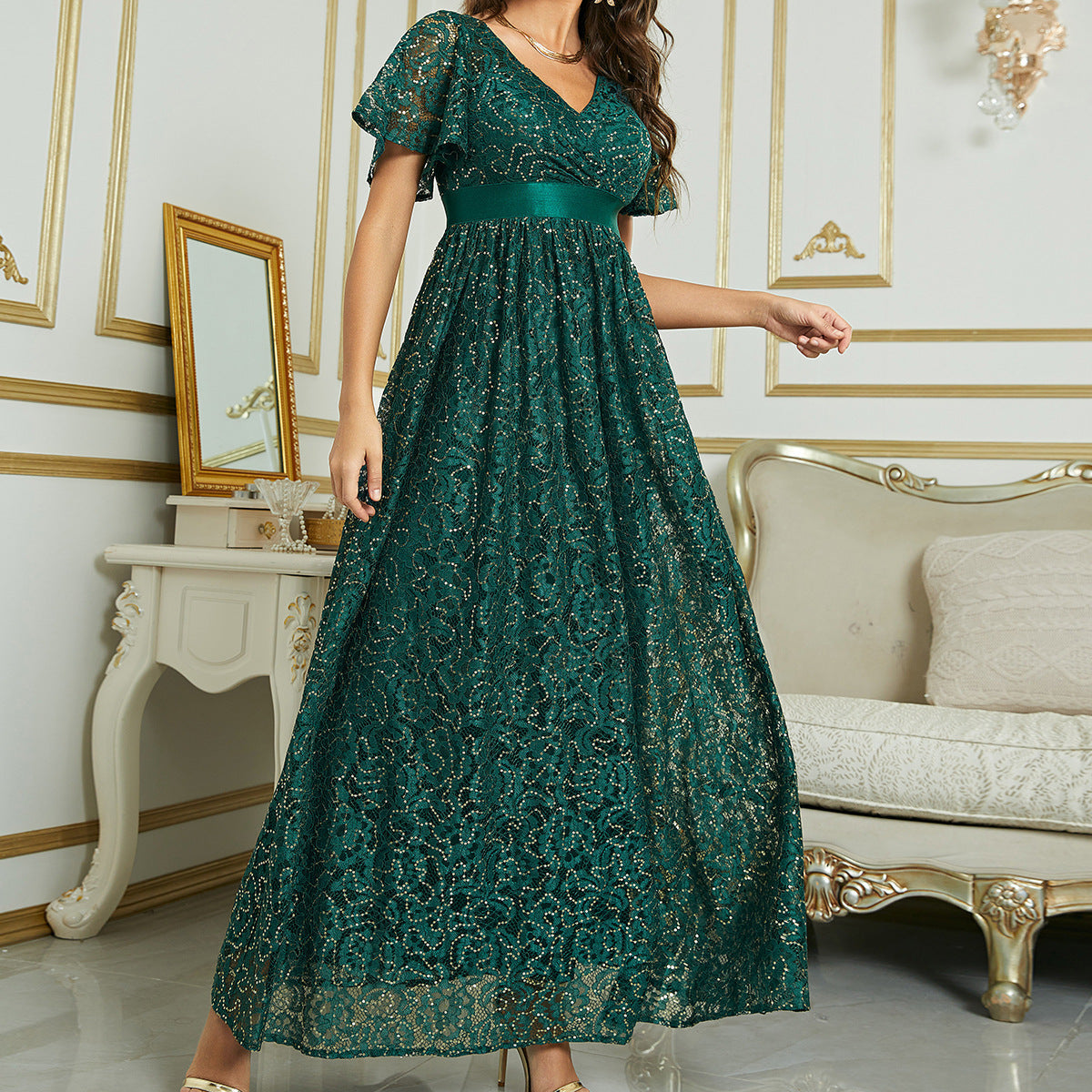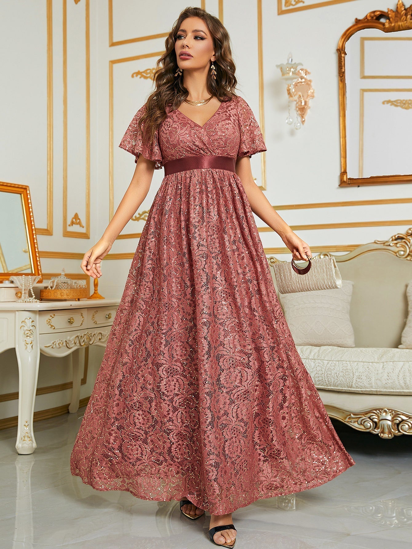 Mit diesem rosa Maxikleid ziehen Sie bei jedem Event die Blicke auf sich. Der Dekolleté-Ausschnitt und das figurbetonte Oberteil sorgen für eine schmeichelhafte Silhouette, während die taillierte Taille Ihre Kurven betont. Die Schmetterlingsärmel verleihen dem Ensemble einen Hauch von Eleganz. Der bodenlange Rock fällt anmutig und lässt Sie sich wie der Star der Nacht fühlen. Mit diesem Kleid wird Ihr außergewöhnliches Modebewusstsein die Menge begeistern.