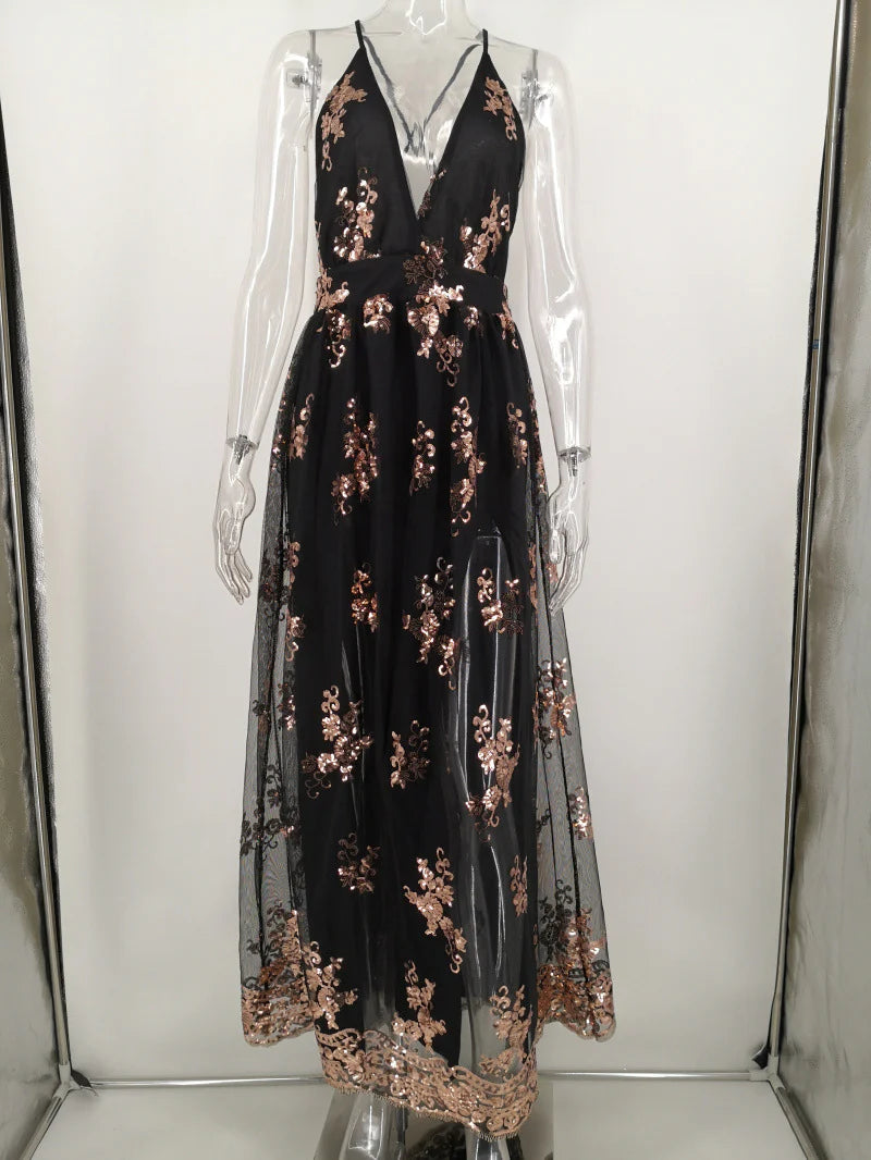 Dieses wunderschöne Kleid ist mit üppigen Samtblumen auf einer zarten Netzauflage verziert. Es besticht durch einen schmeichelnden, tiefen Ausschnitt und einen gewagten, offenen Kreuzrücken. Perfekt für Ihren nächsten formellen Anlass. Es wird Sie garantiert zum Blickfang machen. Für einen schicken Look kombinieren Sie es mit einem glamourösen Nude-Make-up, High Heels und einer passenden Mini-Handtasche.