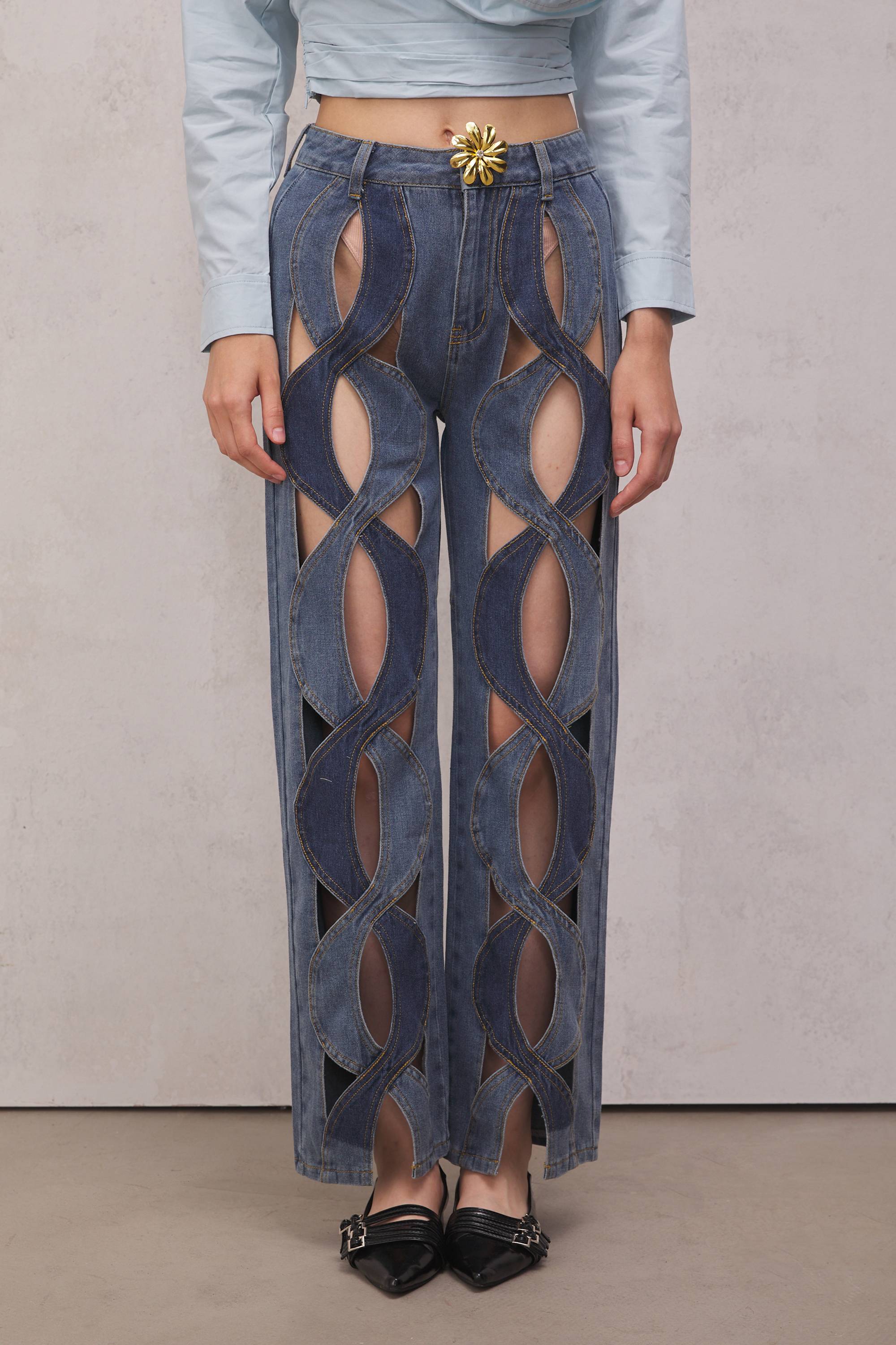 Entdecken Sie die Abigail Hollow Denim Jeans. Aus hochwertigem Hollow Denim gefertigt, ist diese Jeans unglaublich bequem und stylisch. Der Blauton passt perfekt zu jedem Look und bietet ganztägigen Tragekomfort. Ein Must-have für jede Garderobe.
