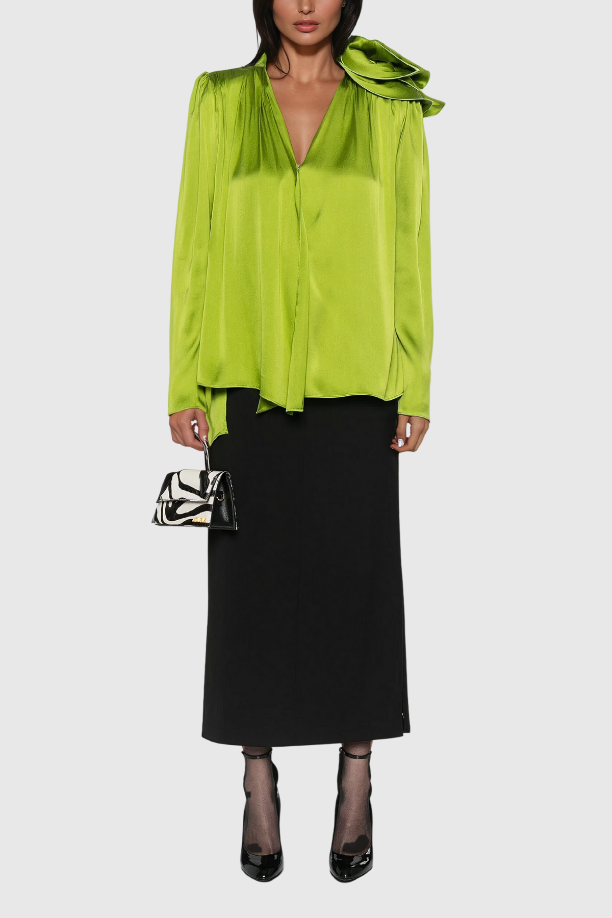 Das fachmännisch gefertigte Afanasi Flower Plunge Lace Up Satin Top mit tiefem Ausschnitt und Schnürung bietet einen verführerischen und zugleich eleganten Look. Hergestellt aus hochwertigem Satin, ist dieses Top bequem und luxuriös zugleich. Perfekt für einen Abend oder einen besonderen Anlass.