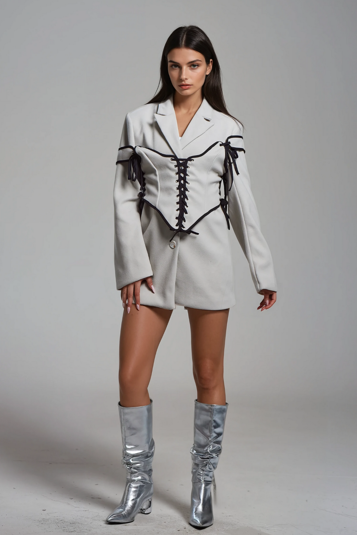 Wir präsentieren den Alonsa Korsett-Schnürblazer in Weiß. Ein elegantes und elegantes Kleidungsstück, das jedes Outfit aufwertet. Die Korsett-Schnürung verleiht ihm eine einzigartige Note, während das Blazer-Design Professionalität ausstrahlt. Hergestellt aus hochwertigem Material ist dieser Blazer stilvoll und bequem zugleich.