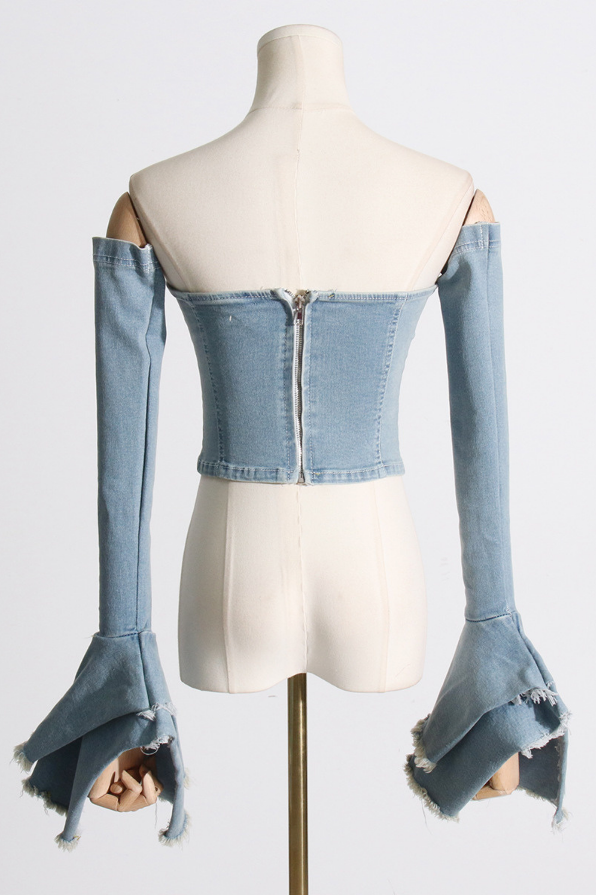 Das Ava Denim Off Shoulder Bodycon Top bietet mit seinem figurbetonten Design und dem schulterfreien Ausschnitt eine figurschmeichelnde Passform. Hergestellt aus hochwertigem Denim, bietet dieses Top Stil und Komfort zugleich. Perfekt für einen trendigen und schicken Look. Es ist eine vielseitige Ergänzung für jede Garderobe.