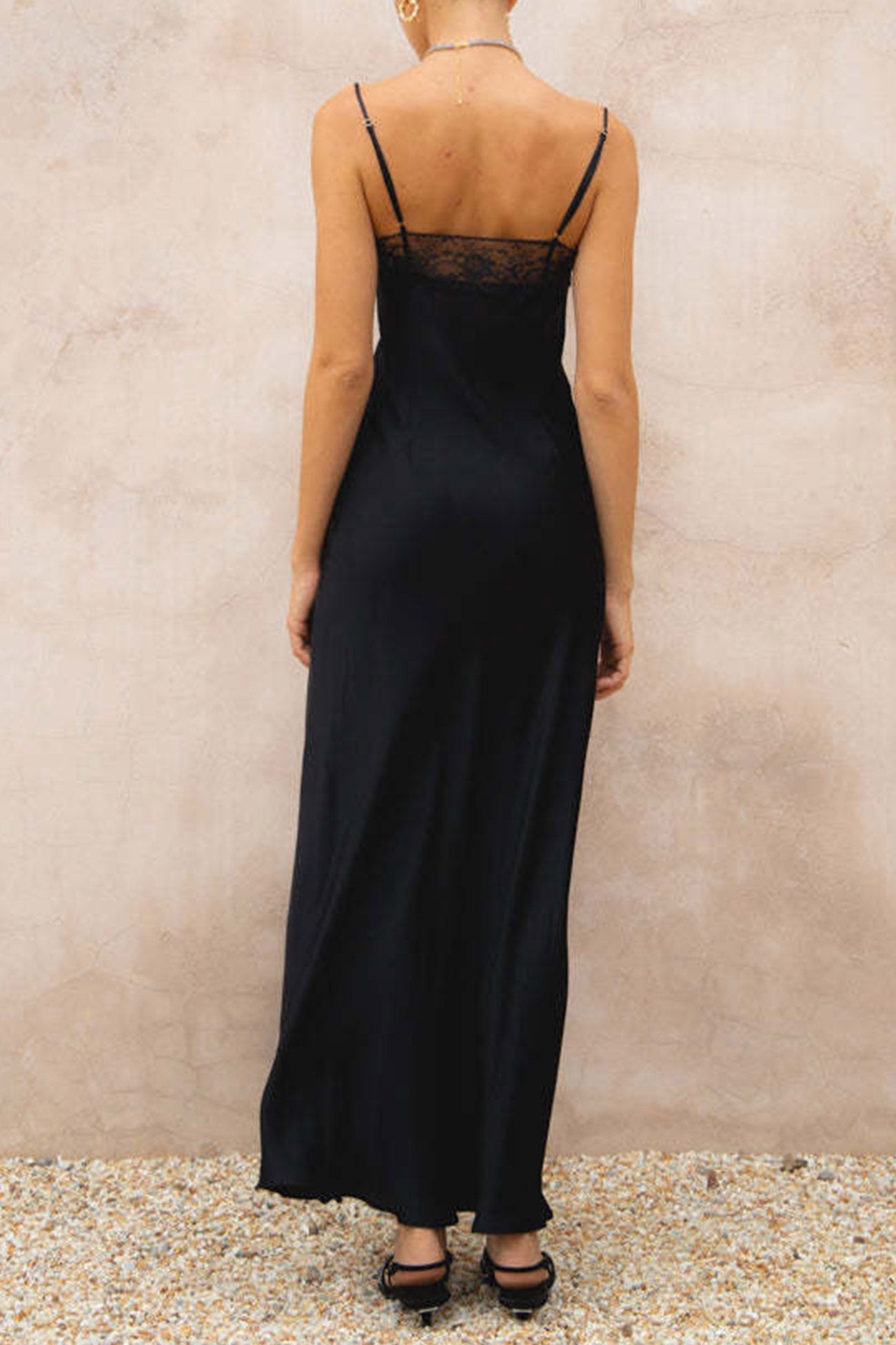 Schwarzes Camisole-Kleid mit Patchwork-Spitze