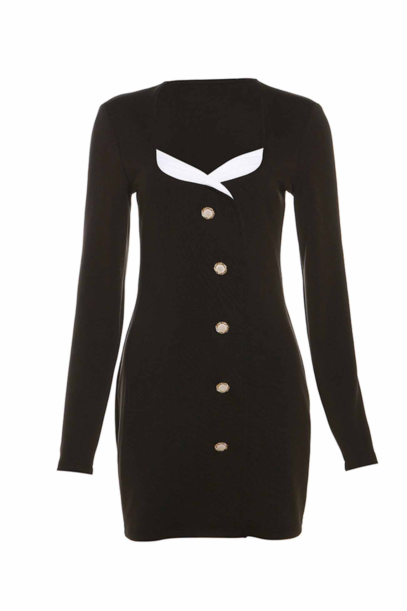 Langärmliges, figurbetontes Kleid mit Knopfleiste