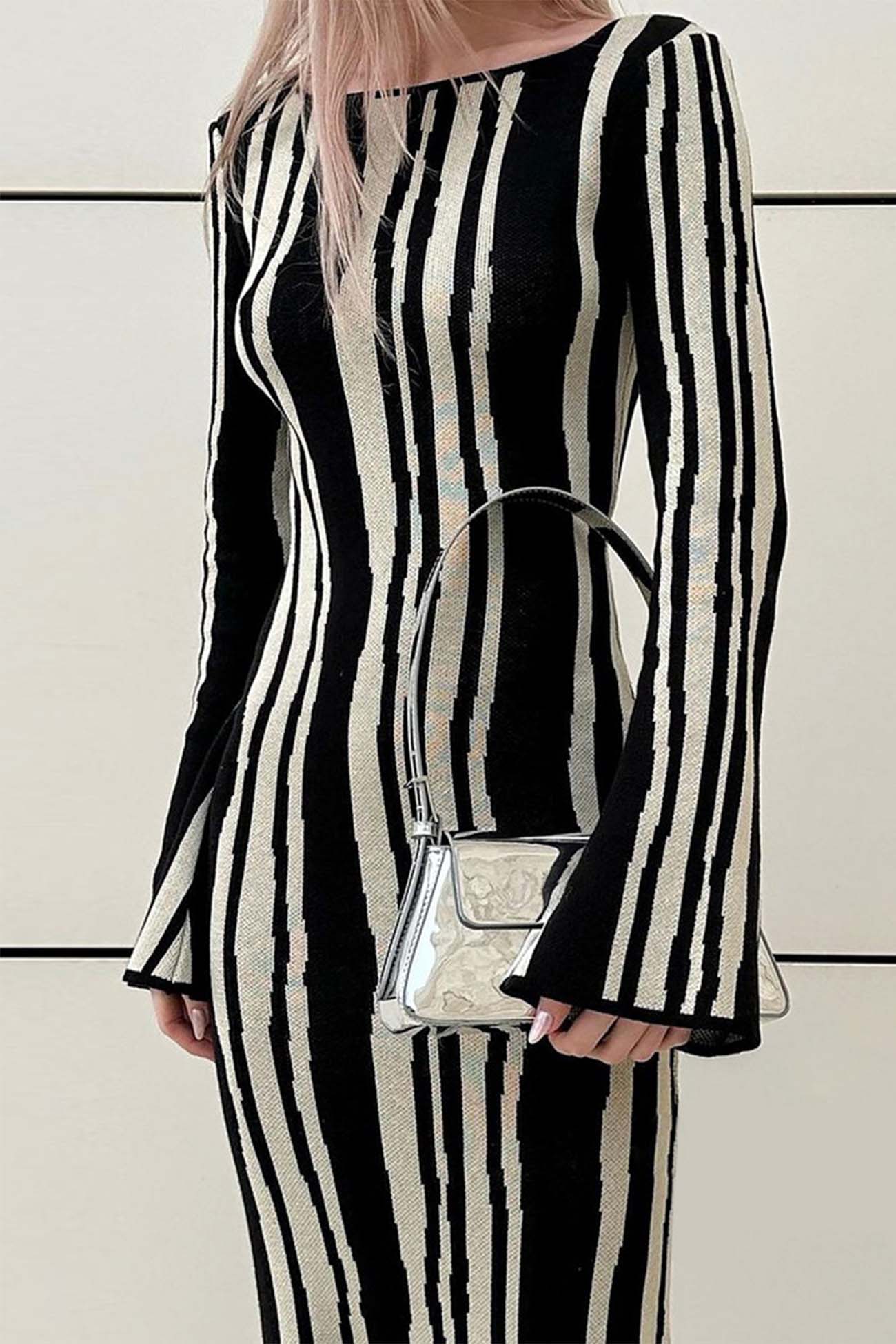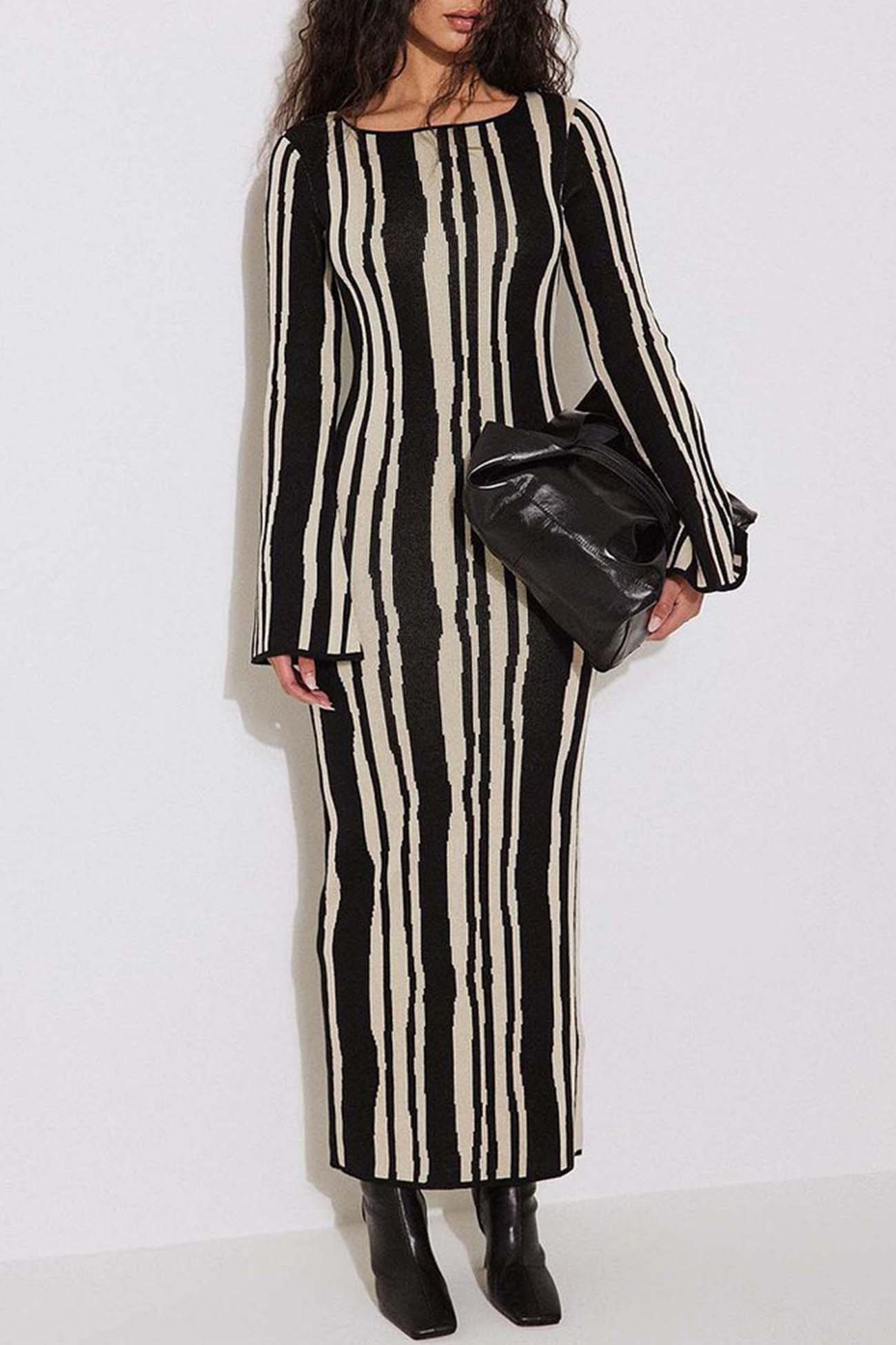 Strickkleid mit langen Ärmeln in Kontrastfarbe