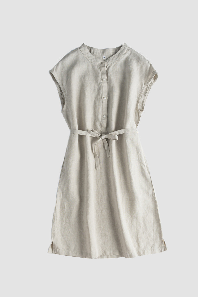 Aus weichem Leinen. Hemdblusenkleid-Stil mit Knopfdetails. Die Kragen-Silhouette verleiht Eleganz und unterstreicht den femininen Look. Mit genau dem richtigen Schwung für einen Hauch Retro-Flair und einer modernen Passform. Es ist schmeichelhafter denn je – maximal lässig-cool.