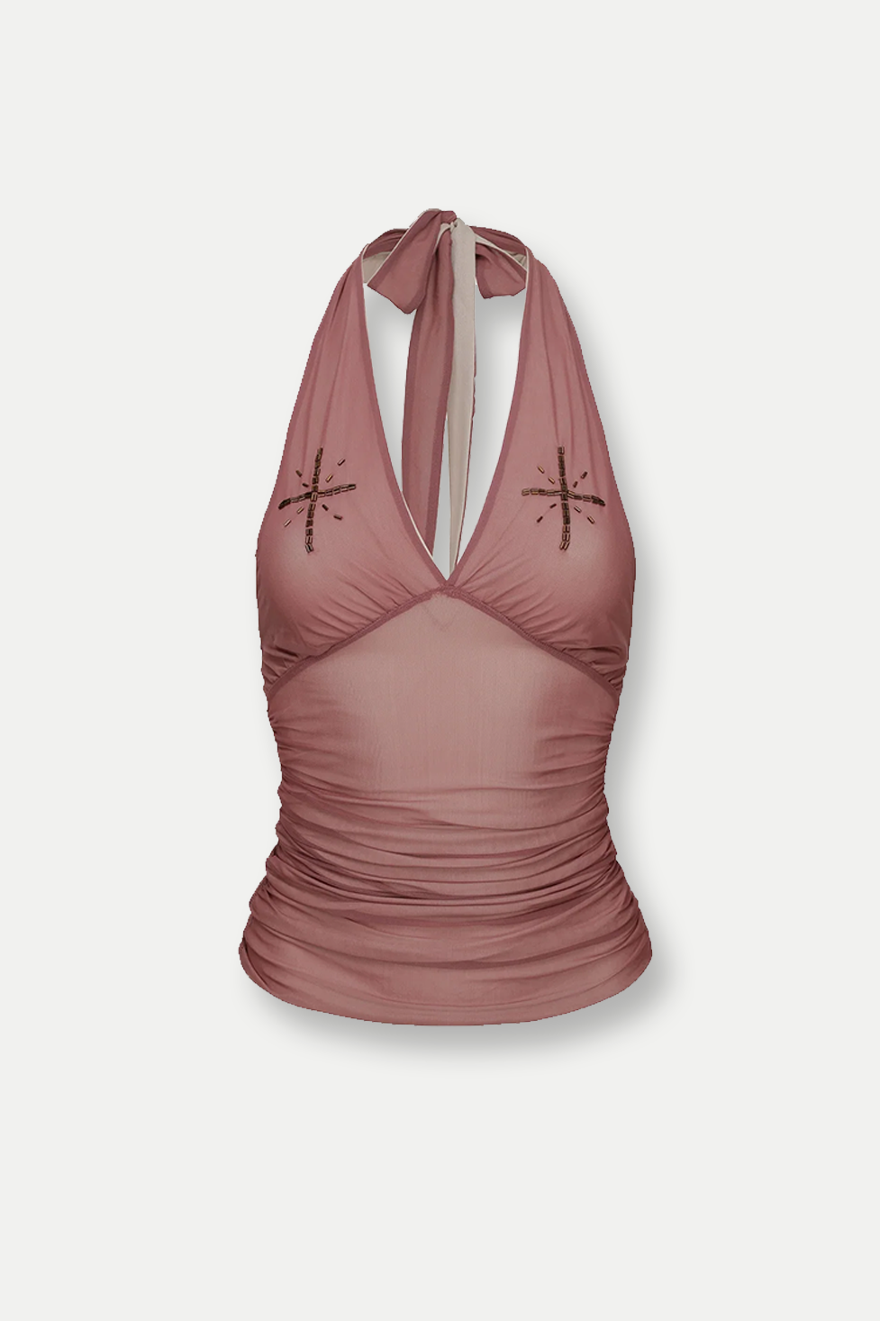 Dieses Dakota Neckholder-Top ist stilvoll und vielseitig zugleich. Mit seinem rückenfreien Design und den gerüschten Details verleiht es einer klassischen Silhouette eine moderne Note. Die perfekte Ergänzung für jede Garderobe. Dieses Top lässt sich für jeden Anlass elegant oder leger tragen.