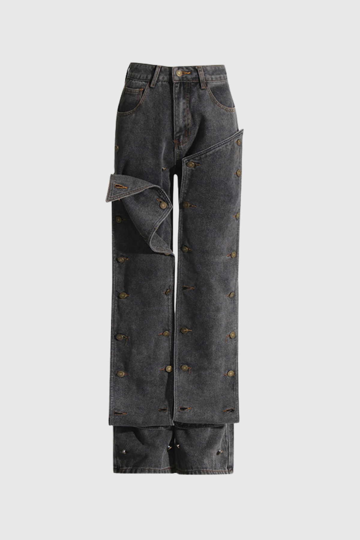 Die Dream Button Jeans in Grau verleiht Ihrem Alltags-Denim eine einzigartige und stylische Note. Mit aufwendigen Patchwork-Details und Knopfverzierungen ist diese Jeans ein echter Hingucker. Hergestellt aus hochwertigen Materialien für Komfort und Langlebigkeit.