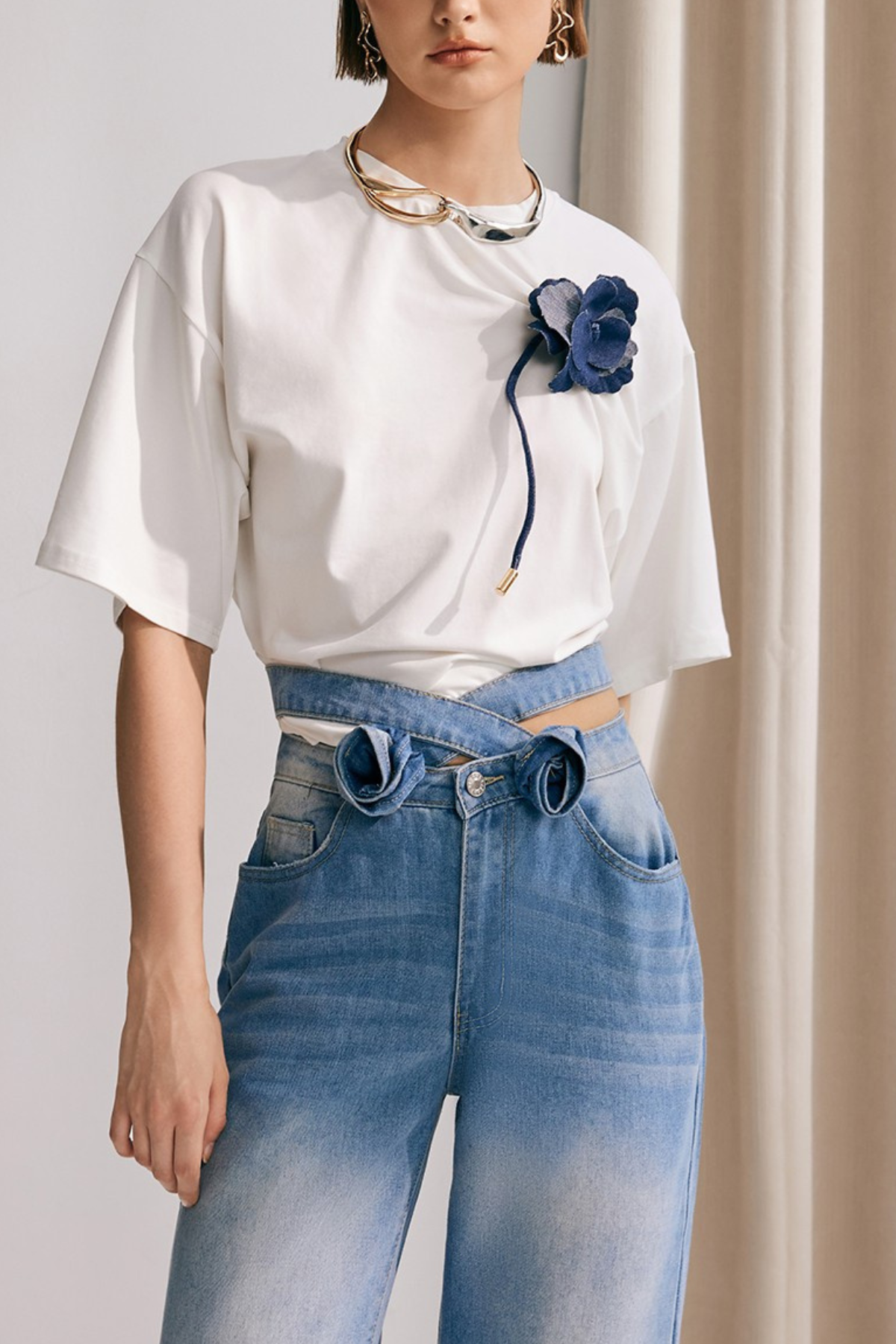 Werten Sie Ihre Garderobe mit dem stylischen Emmalyn Ruched Flower T-Shirt auf. Dieses vielseitige T-Shirt besticht durch sein einzigartiges gerüschtes Blumendesign, das jedem Outfit einen Hauch von Weiblichkeit verleiht. Hergestellt aus hochwertigen Materialien bietet dieses Shirt Komfort und Stil zugleich. Werten Sie Ihr Modebewusstsein mit dem Emmalyn Ruched Flower T-Shirt auf.