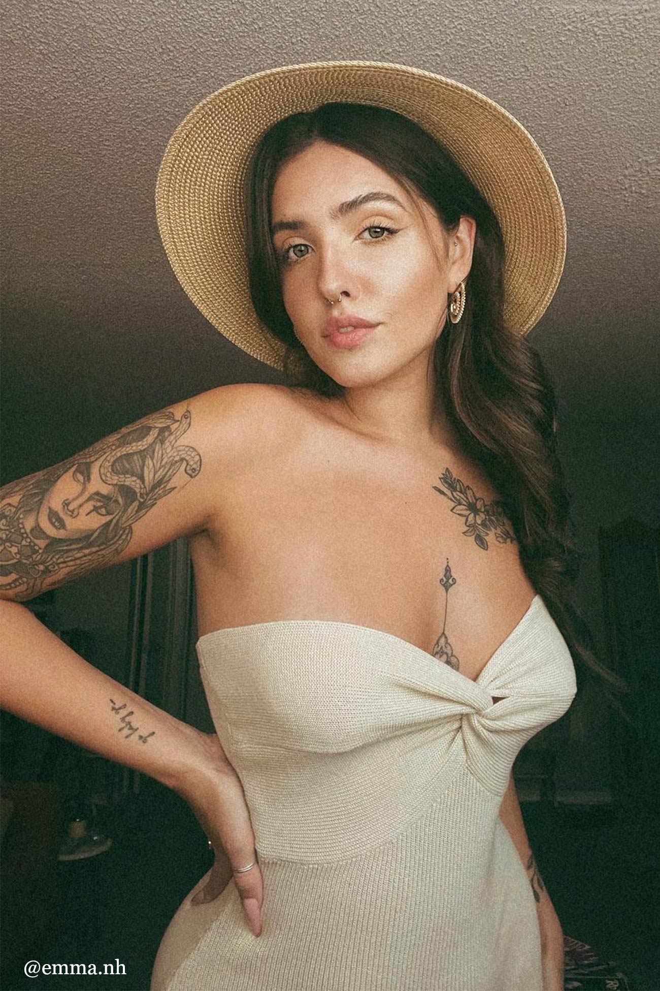 Trägerloses Strickkleid mit verdrehter Vorderseite