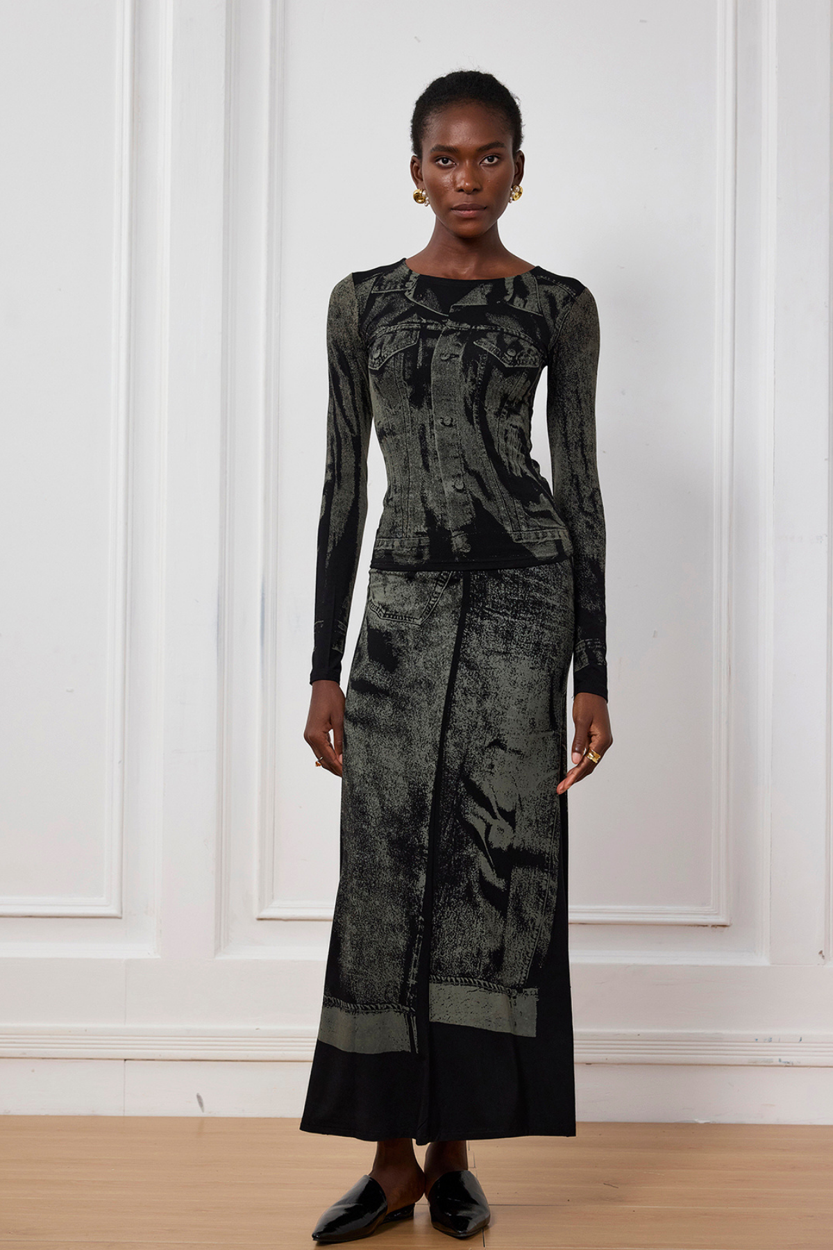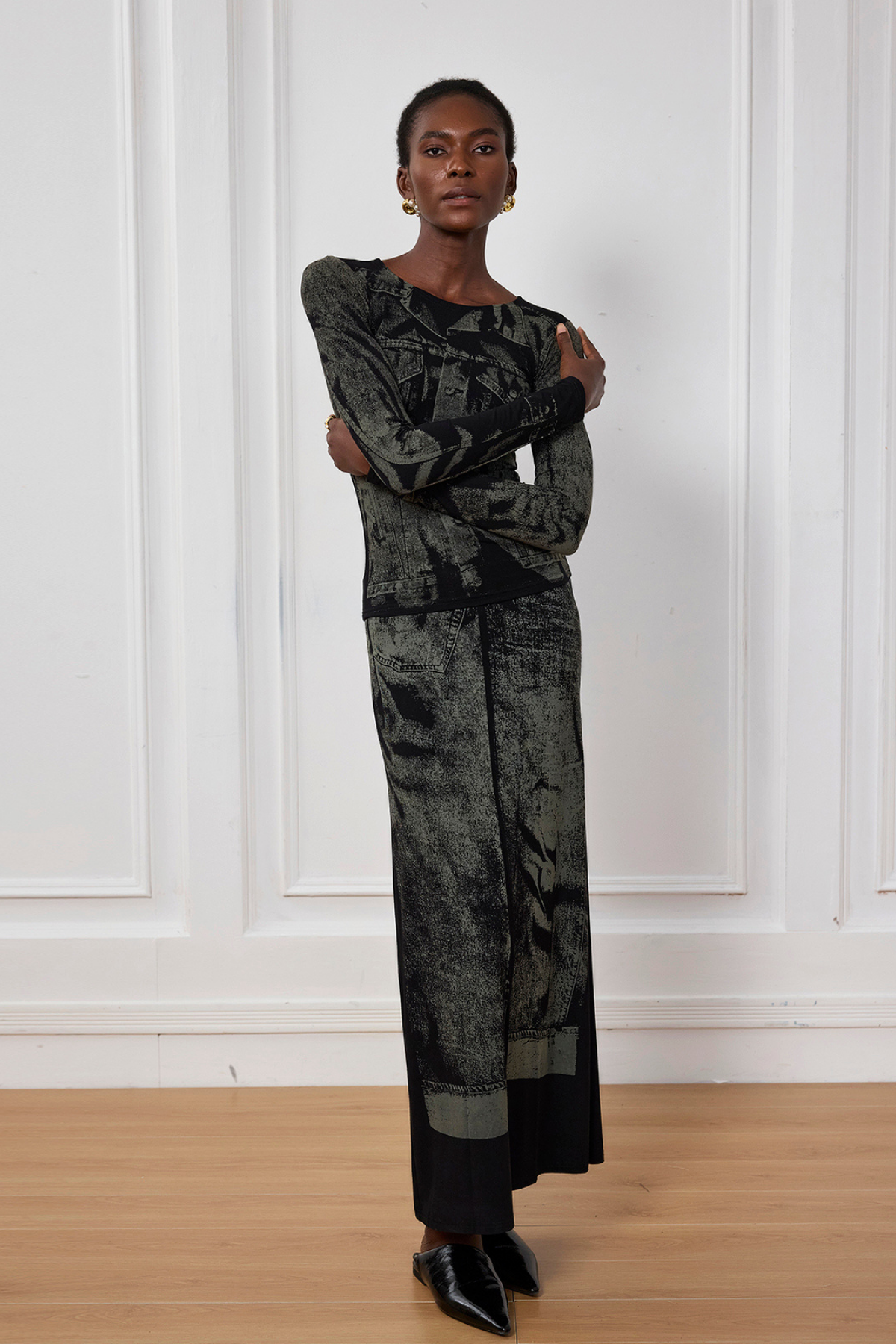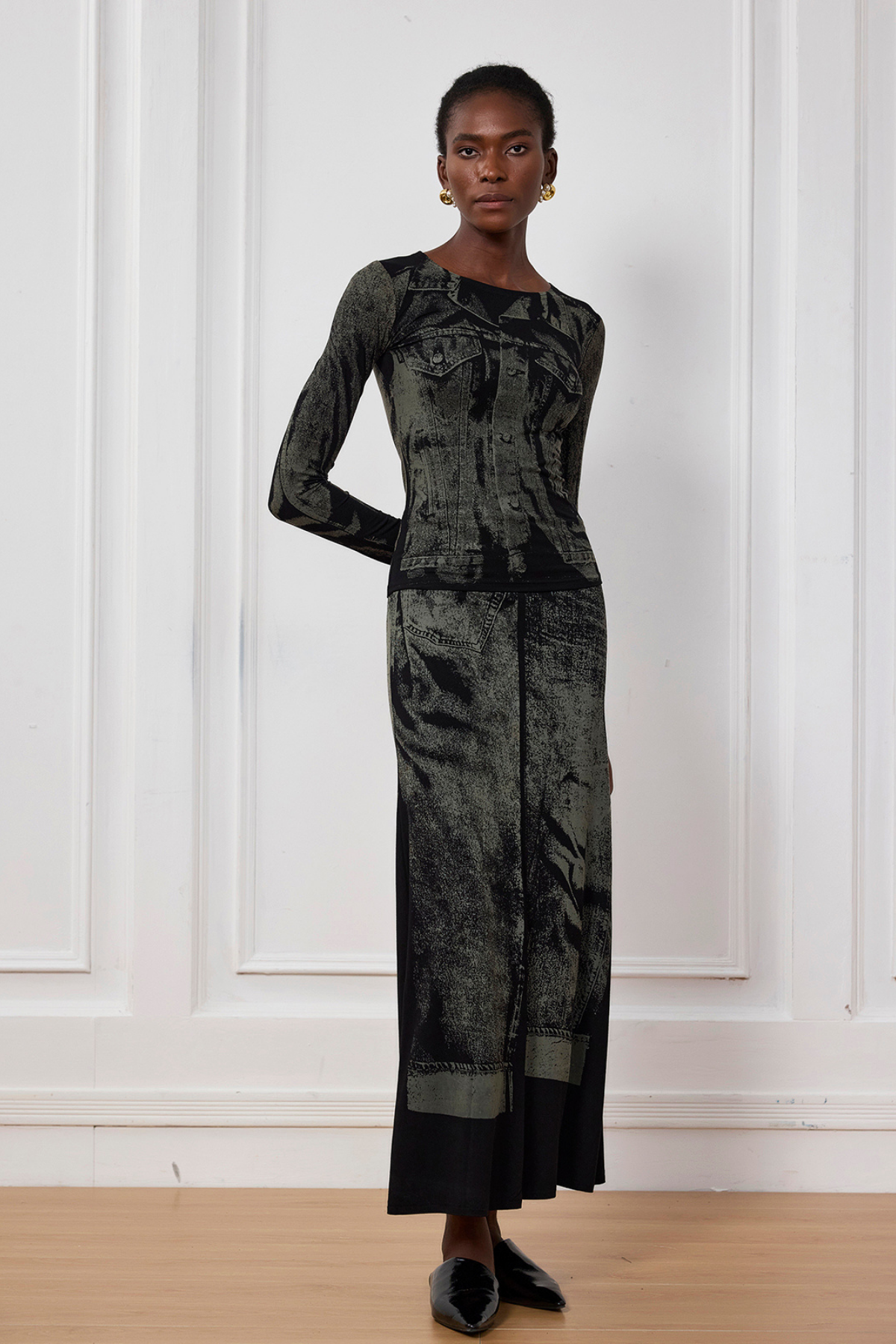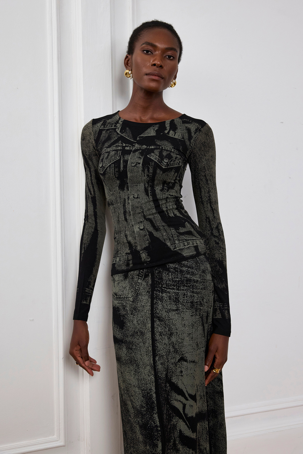Das figurbetonte Top mit Indigo-Illusionsdruck ist eine atemberaubende Ergänzung für jede Garderobe. Mit seinem einzigartigen Indigo-Illusionsdruck ist dieses Top ein Blickfang und vielseitig einsetzbar. Die bequeme, figurbetonte Passform betont Ihre Kurven und bietet gleichzeitig Komfort. Perfekt für jeden Anlass. Dieses Top unterstreicht Ihren Stil und lässt Sie aus der Masse hervorstechen.