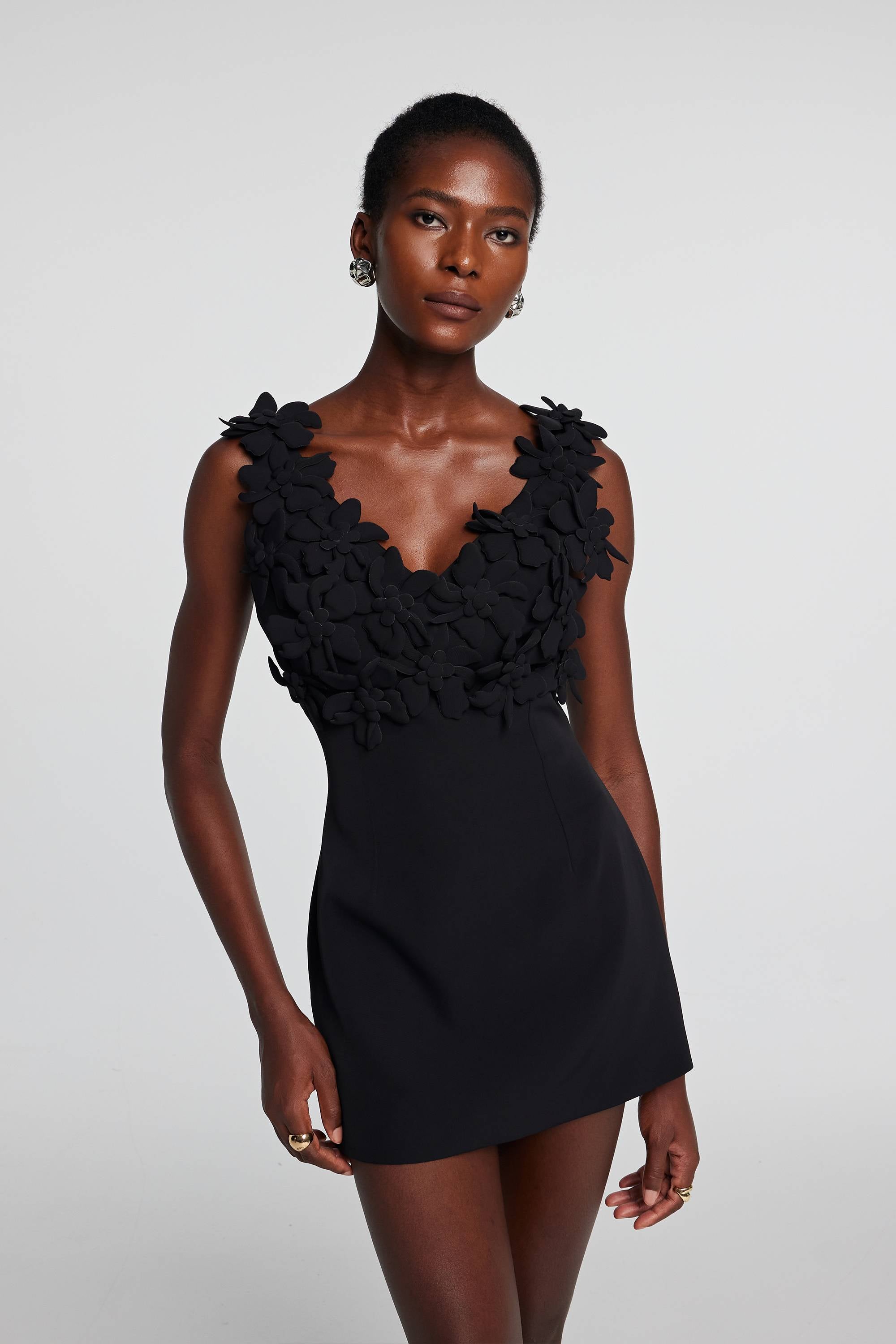 Das ärmellose Kira Flower Plunge Minikleid kombiniert verspieltes Design mit einer schmeichelnden Silhouette. Der tiefe V-Ausschnitt und das ärmellose Design sorgen für eine atmungsaktive und bequeme Passform. Der lebendige Blumendruck verleiht dem Kleid einen Hauch Weiblichkeit. Perfekt für Frühlings- und Sommeranlässe. Dieses Kleid ist stilvoll und bequem zugleich.