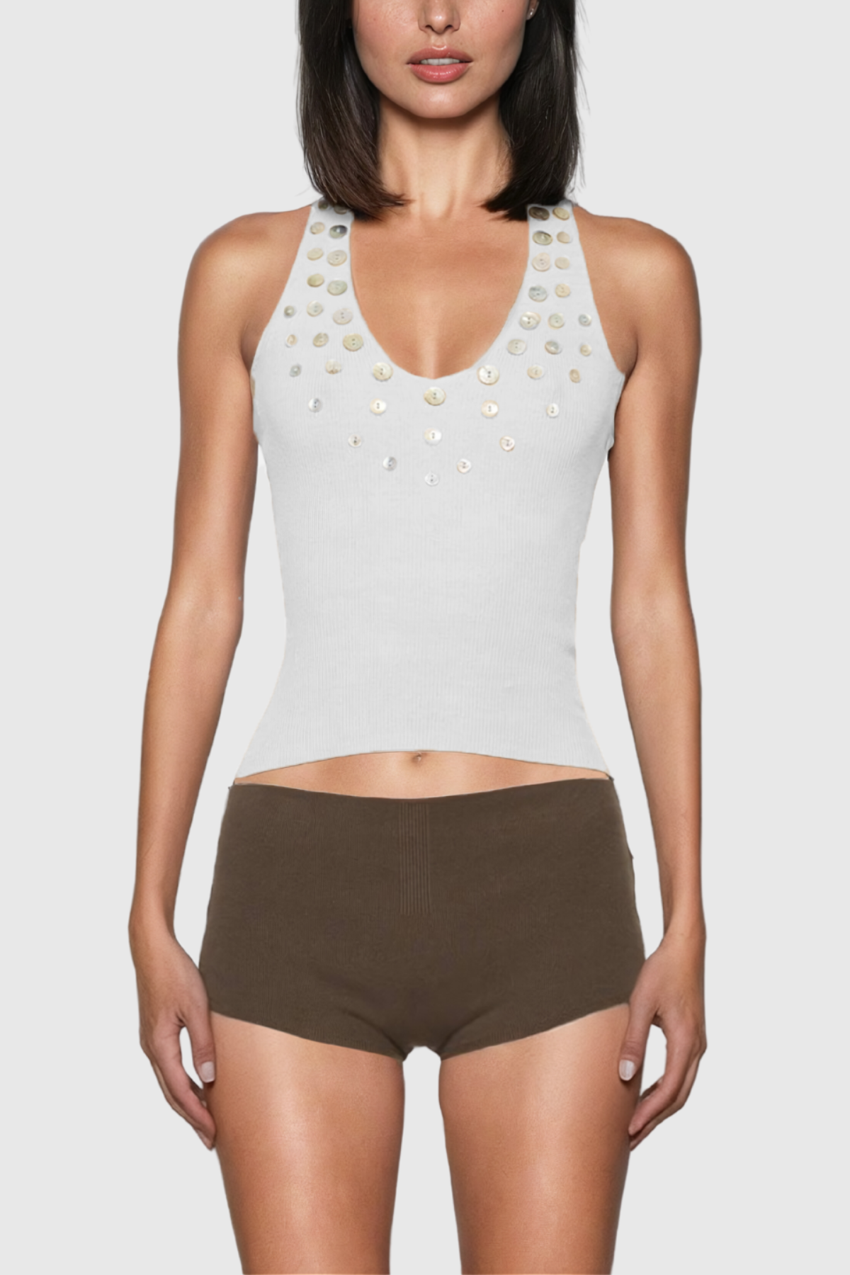 Das meisterhaft gefertigte Pihu Pailletten-Neckholder-Top in Apricot ist ein Must-have für jede modische Garderobe. Mit seinem Neckholder- und rückenfreien Design strahlt dieses Top mühelose Eleganz aus. Die schimmernden Pailletten verleihen einen Hauch von Glamour. Perfekt für besondere Anlässe oder einen Abend.