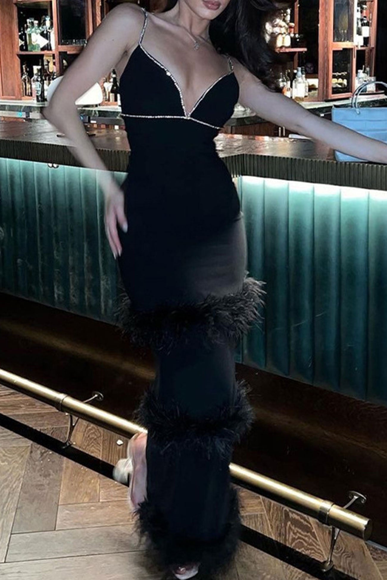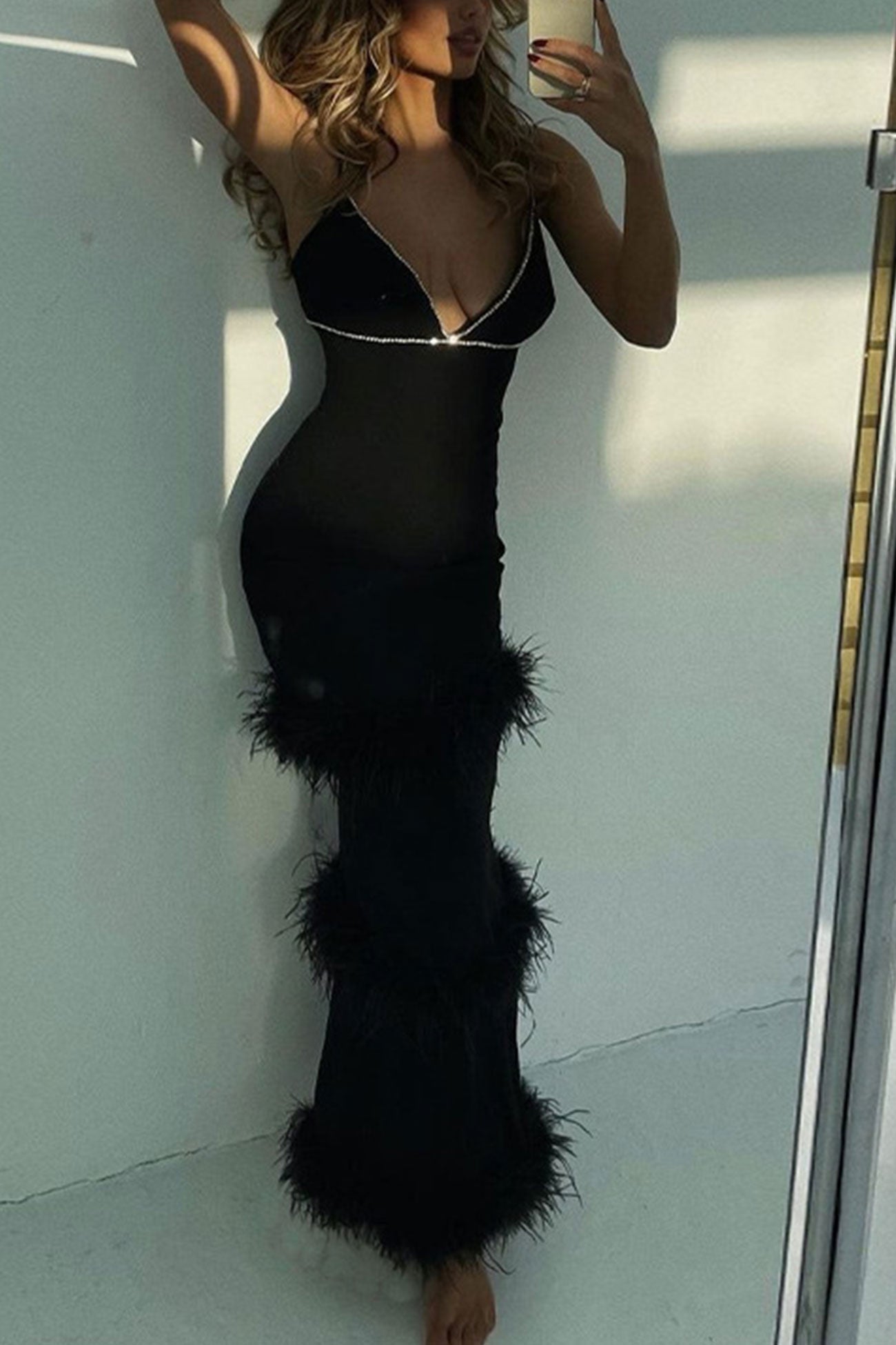Flauschiges Camisole-Kleid mit Strasssteinen