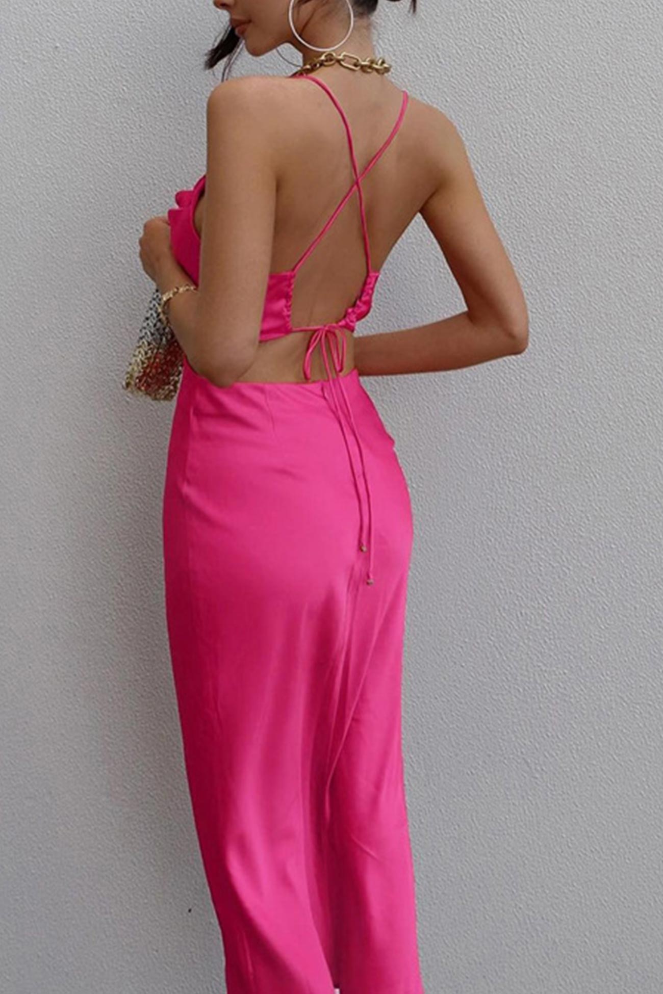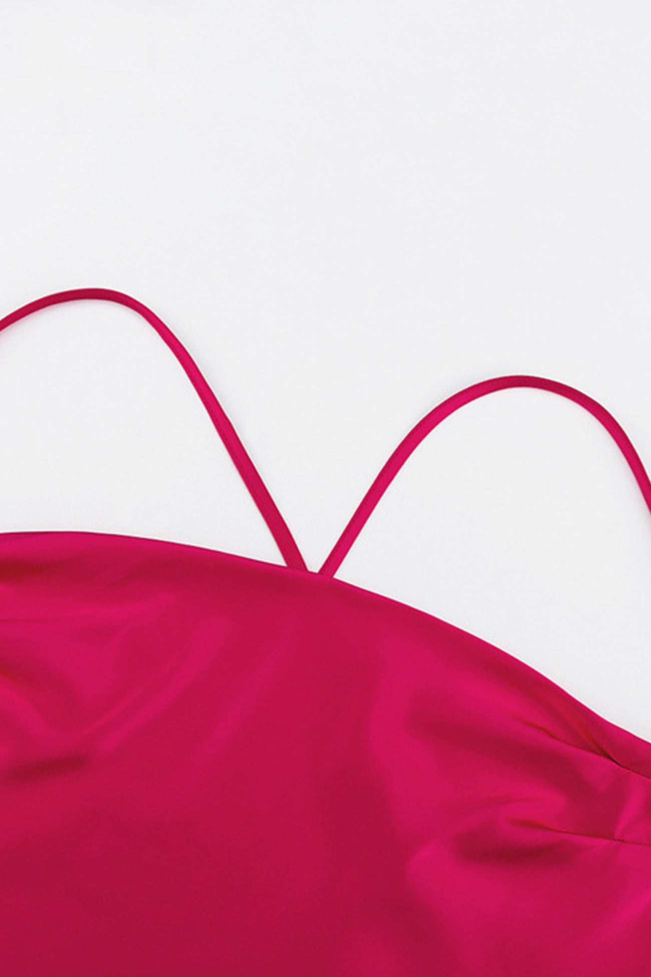 Rosafarbenes, gekreuztes Camisole-Kleid aus Satin mit Bindeband