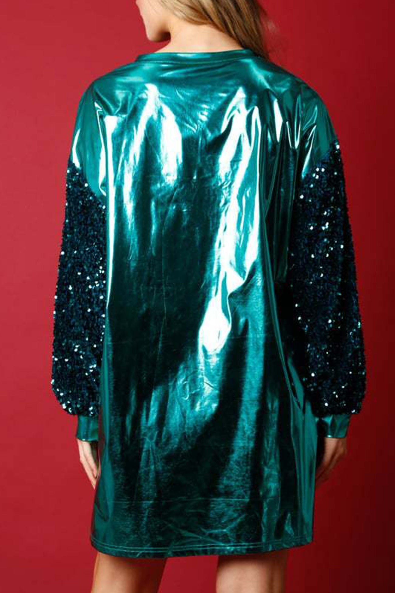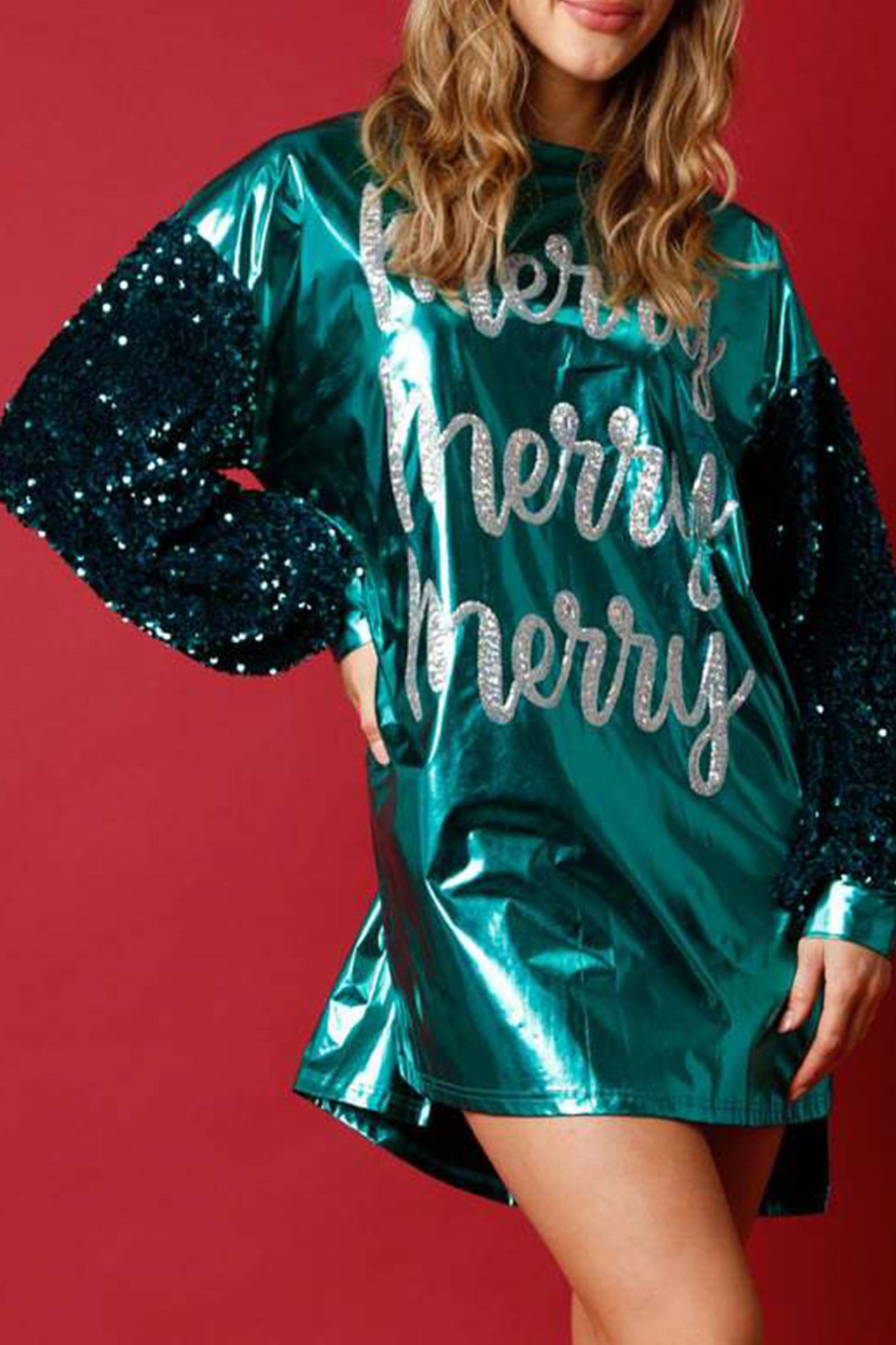 Glänzendes Kleid mit Paillettenärmeln und Buchstabengrafik