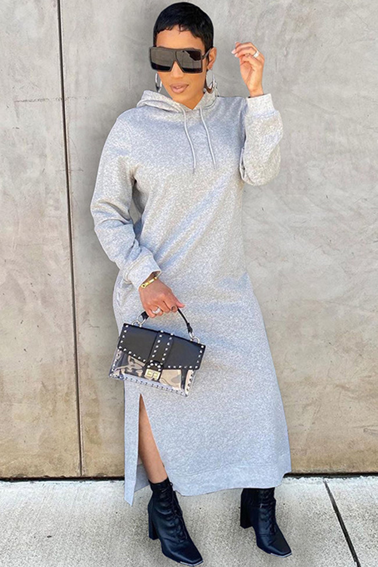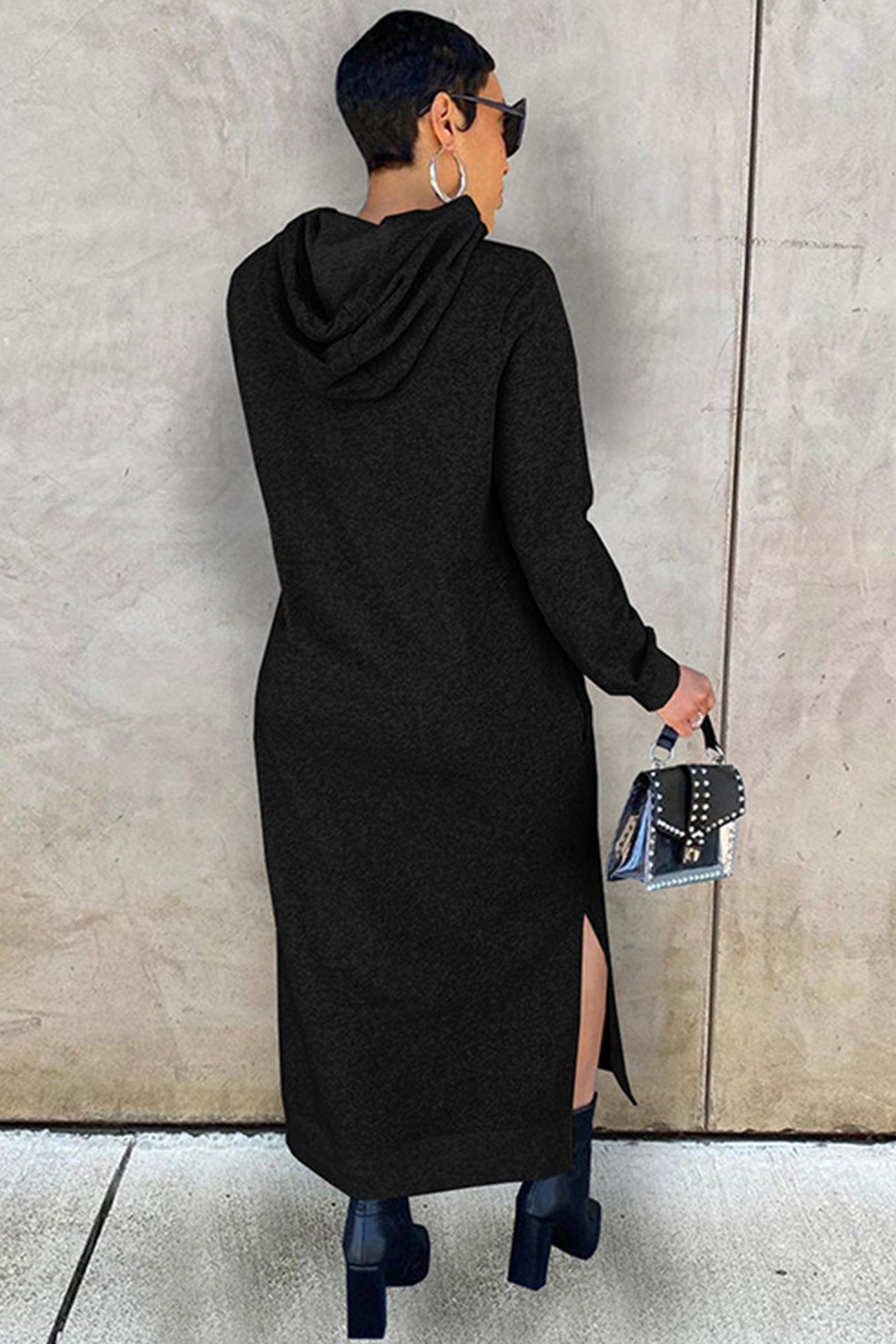 Hoodiekleid mit einfarbigem Schlitz am Saum