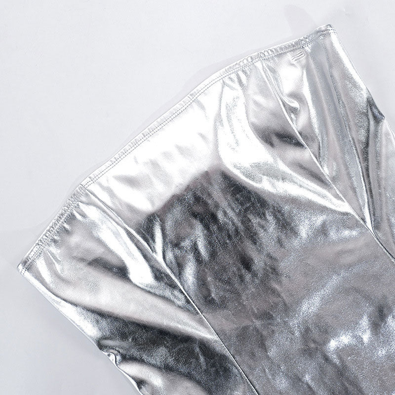 Lass sie noch länger von dir träumen in diesem sexy Schlauchkleid! Aus strukturiertem Leder. Verziert mit einem sinnlichen Schlitz am Oberschenkel. Das ärmellose Oberteil hat einen Bandeau-Ausschnitt. Die schlanke Silhouette wird durch Nähte betont. Kurz geschnitten. Weitere trendige trägerlose Kleider und einzigartige Kleidungsstücke für Damen findest du in unserer Boutique. Kombiniere es mit einer funkelnden Partytasche und High Heels für einen futuristischen Look.