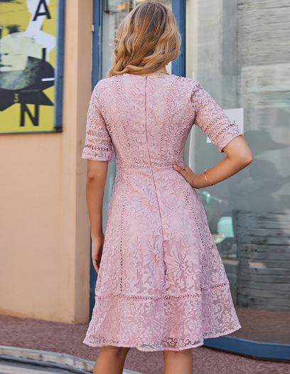 Insrs - embroidered lace V-neck waist slim A-line dress