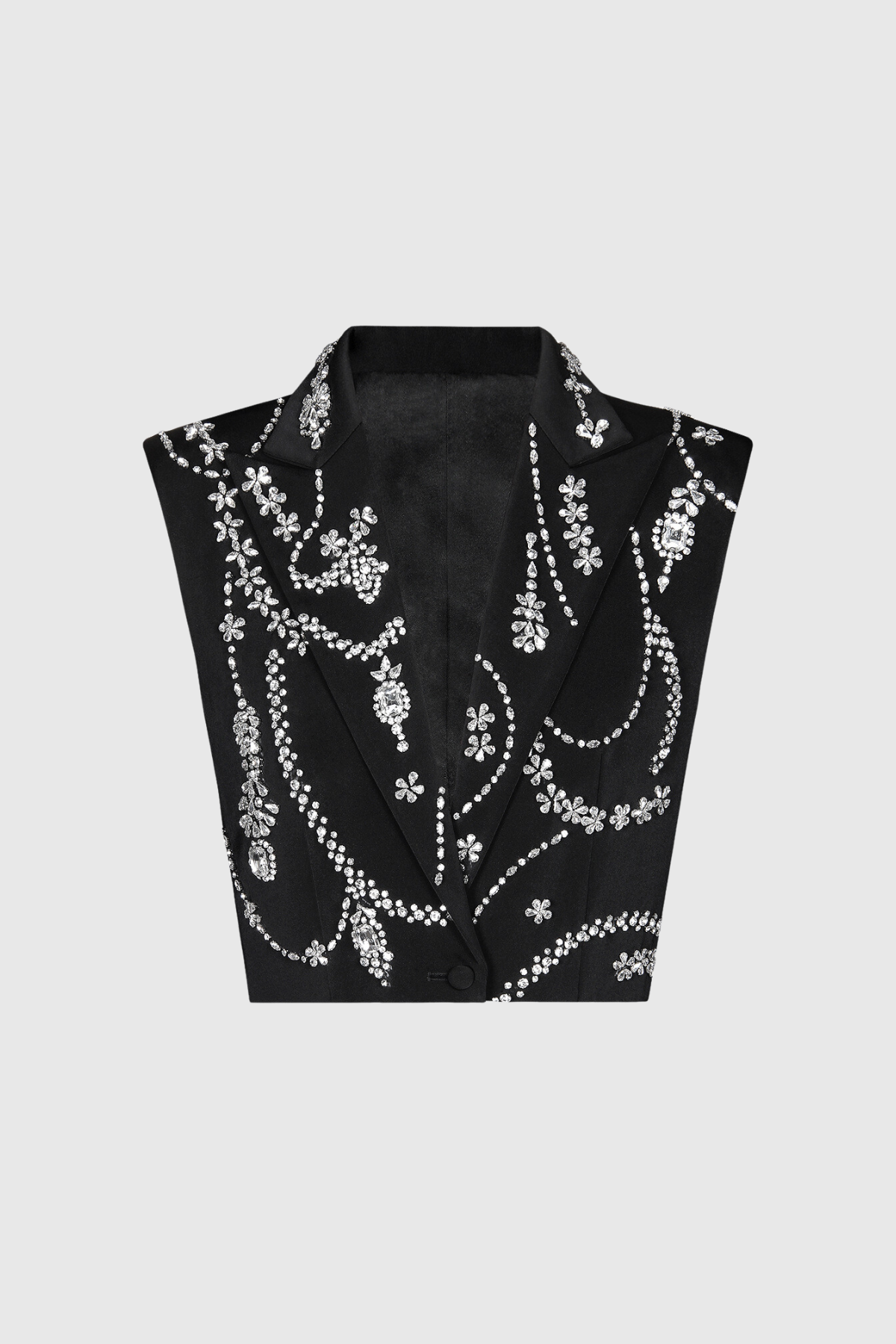 Expertly crafted with sparkling rhinestones. the Abiram Sleeveless Top is the perfect addition to any wardrobe. The sleeveless design allows for effortless layering and the rhinestone details add a touch of elegance to any outfit. Made with high-quality materials. this top offers both style and durability.