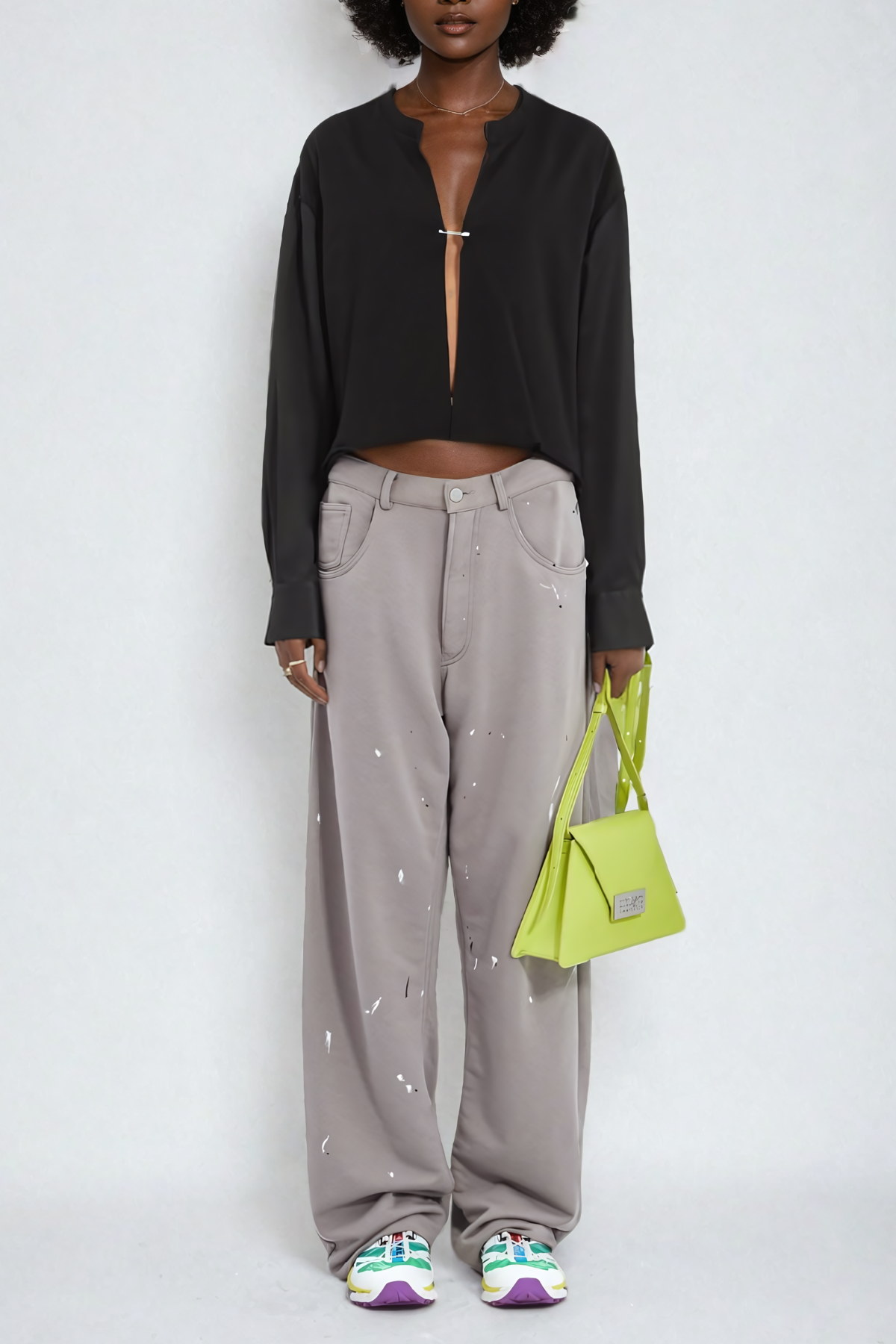The Adamaris Plunge Paperclip Shirt is a must-have for any fashion-forward individual. Made with high-quality materials. this shirt features a unique paperclip design on the plunging neckline. With a professional and modern feel. it's the perfect addition to any wardrobe.