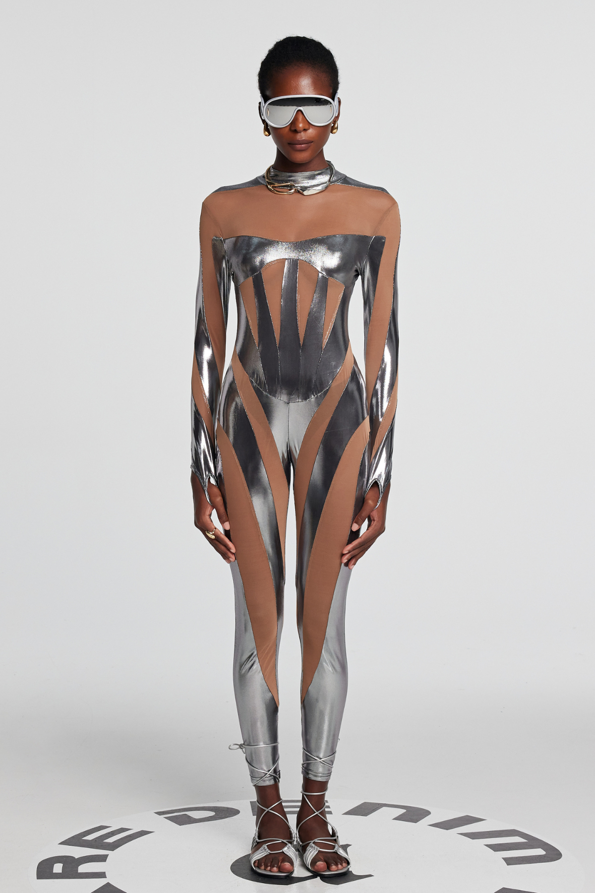 Step out in style with our Ariana Paneled Metallic Jumpsuit! Featuring a gorgeous silver fabric and intricate paneling. this set is sure to turn heads. With its unique metallic shine. you'll be the star of any event. Elevate your look and feel confident with this stunning set!