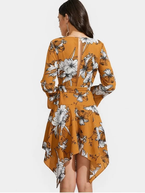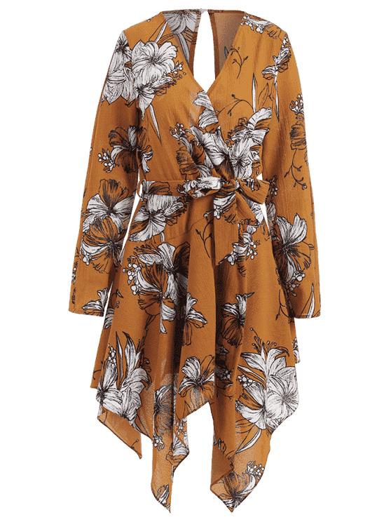 Insrs - Cheap Floral Print Belted Asymmetric Dress
