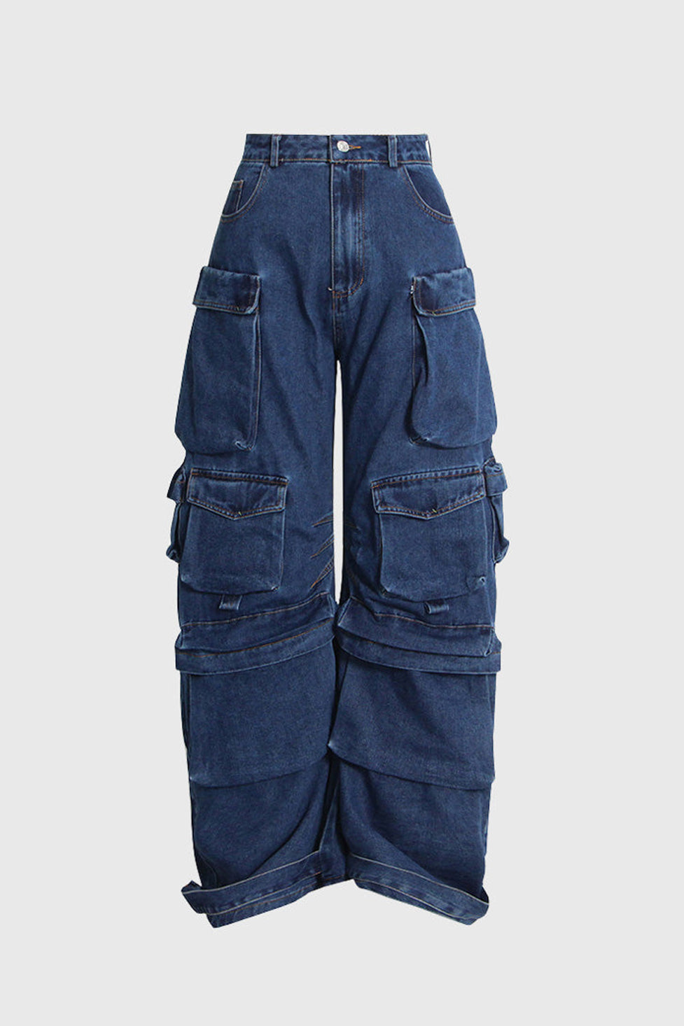 Emma Cargo Jeans In Blue are a stylish and practical choice for your wardrobe. Combining a classic design with modern material. these cargo jeans feature a camouflage pattern that is both stylish and comfortable.