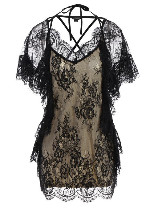 Insrs - Flounced See-Through Lace Dress