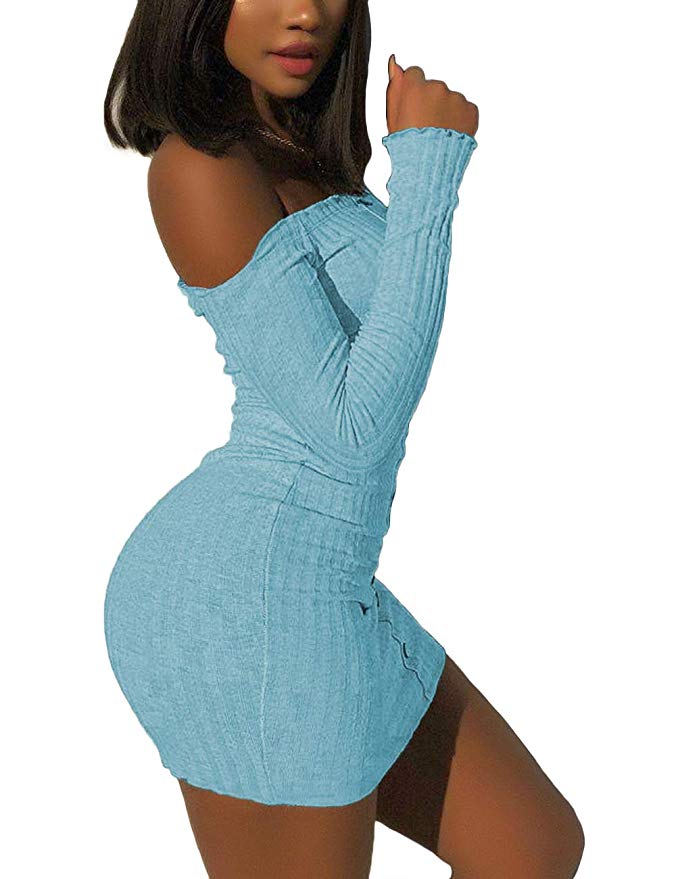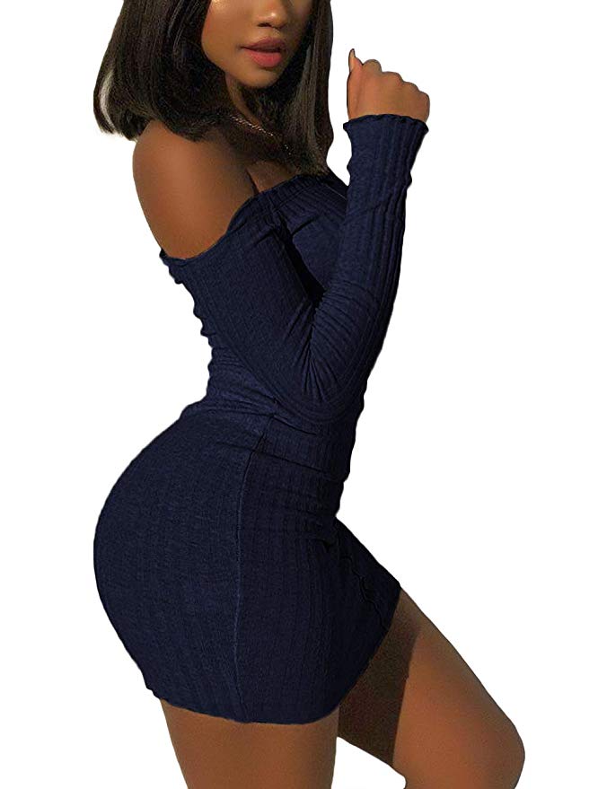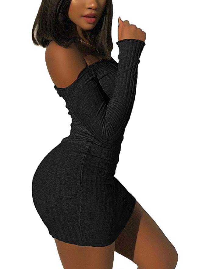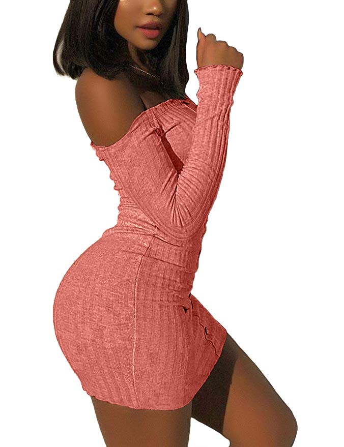 - ?DESIGN: Sexy off shoulder. long sleeve. ruffle design. the top neckline with elastic. slim fit mini sweater dress.