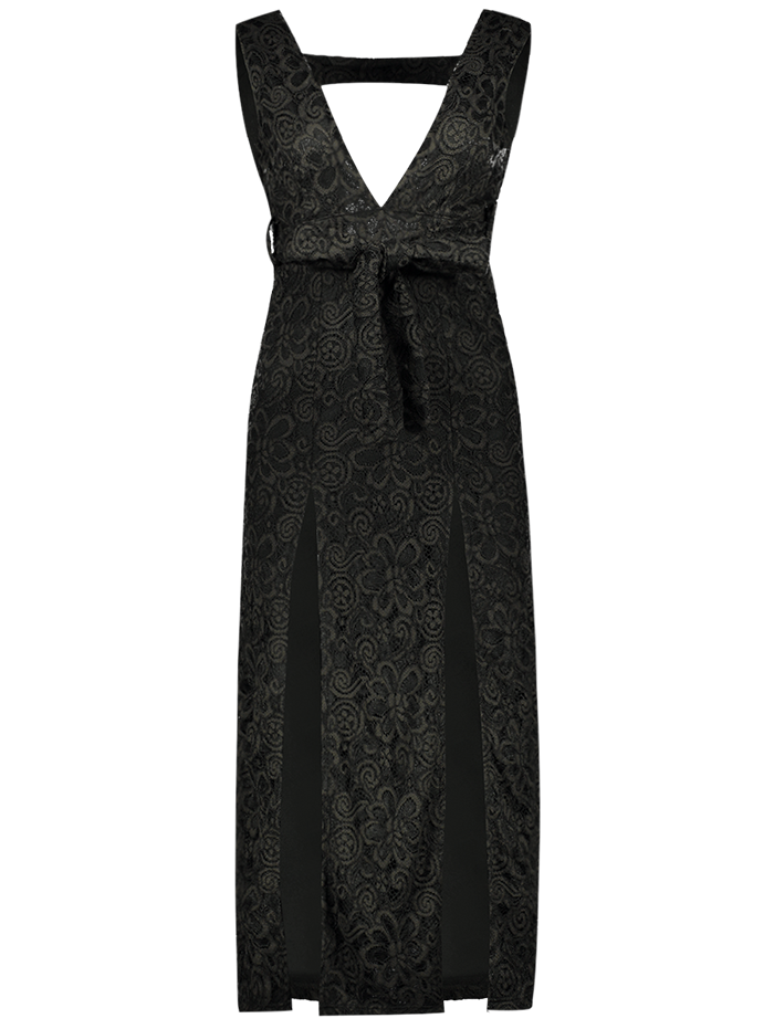 Insrs - Low Cut Lace Plunge Empire Waist Prom Dress