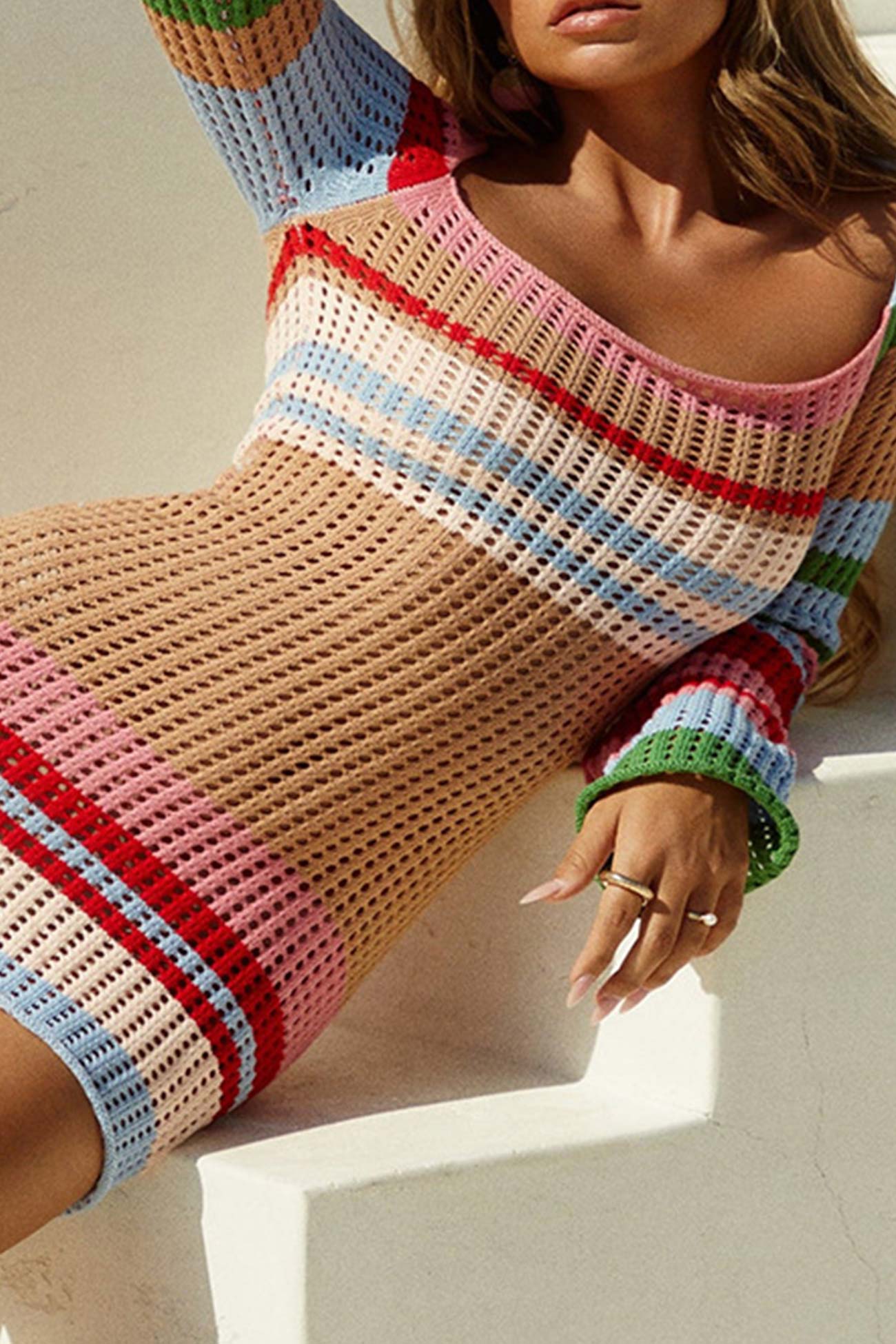 Multi-color Contrast Hollow Out Knit Dress