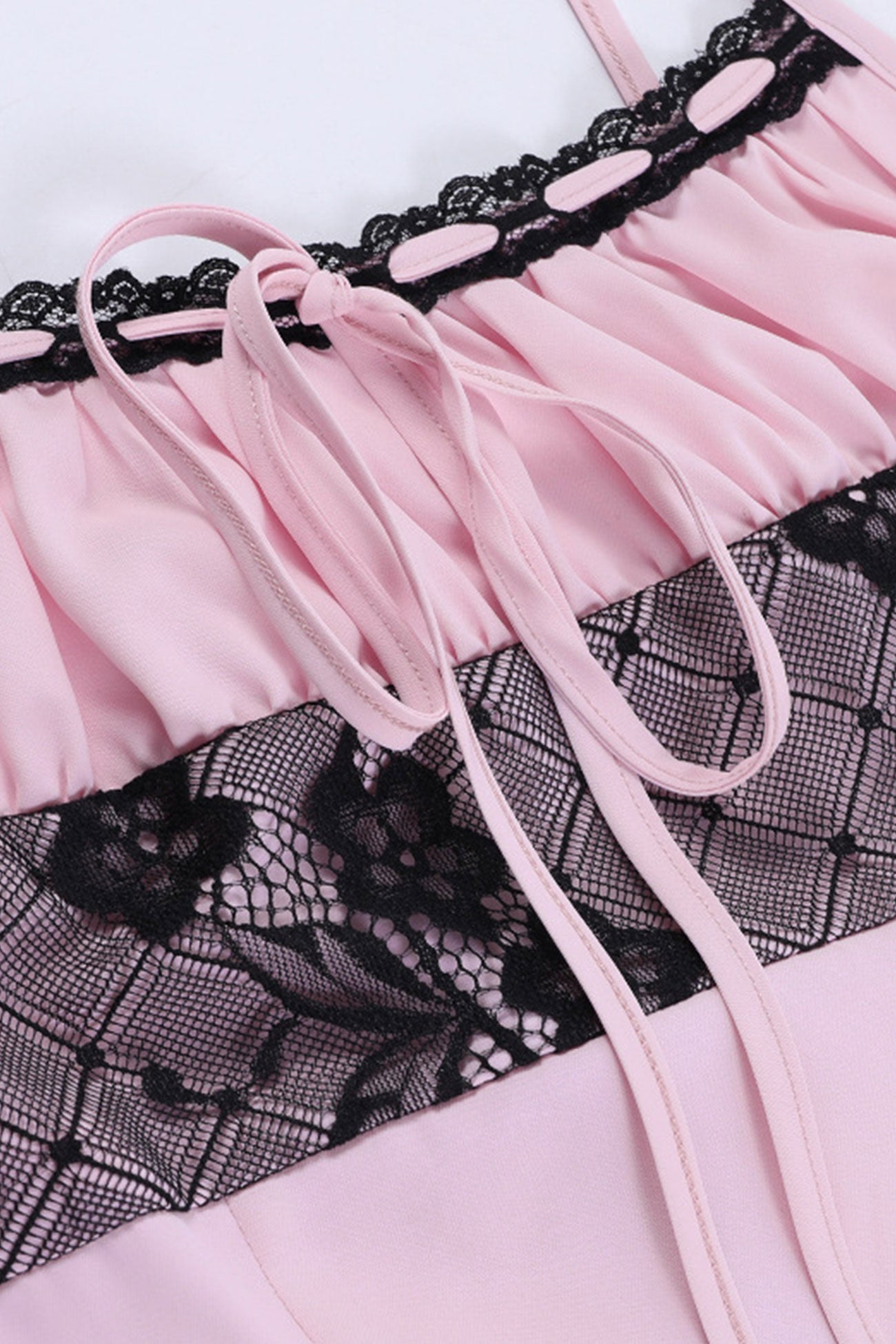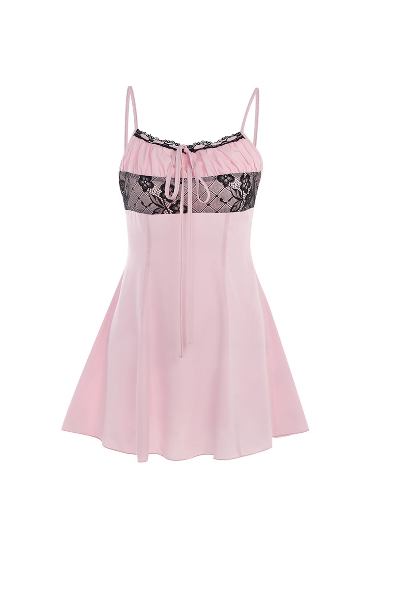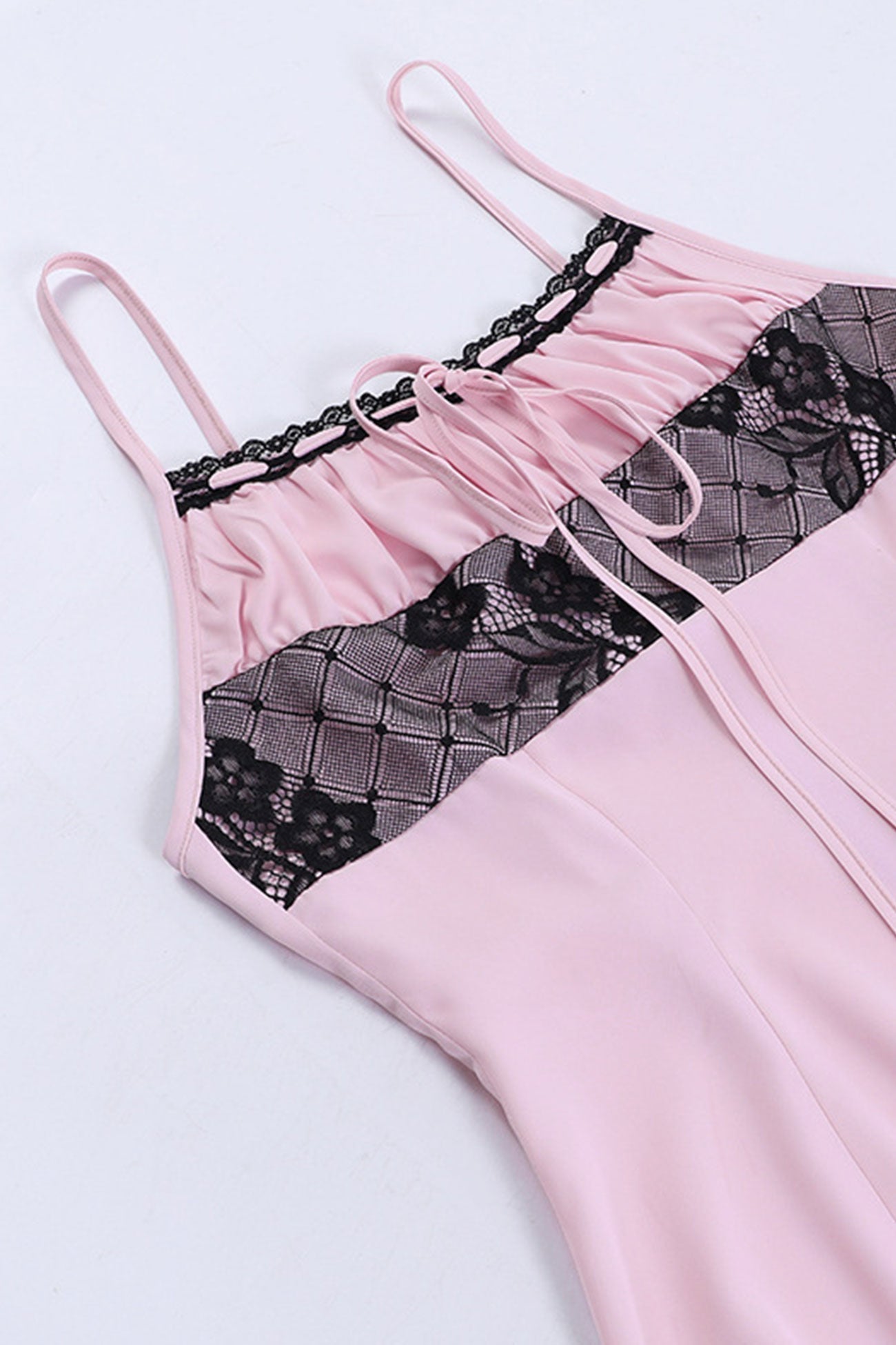 Insrs - Pink Lace Patchwork A-line Cami Dress