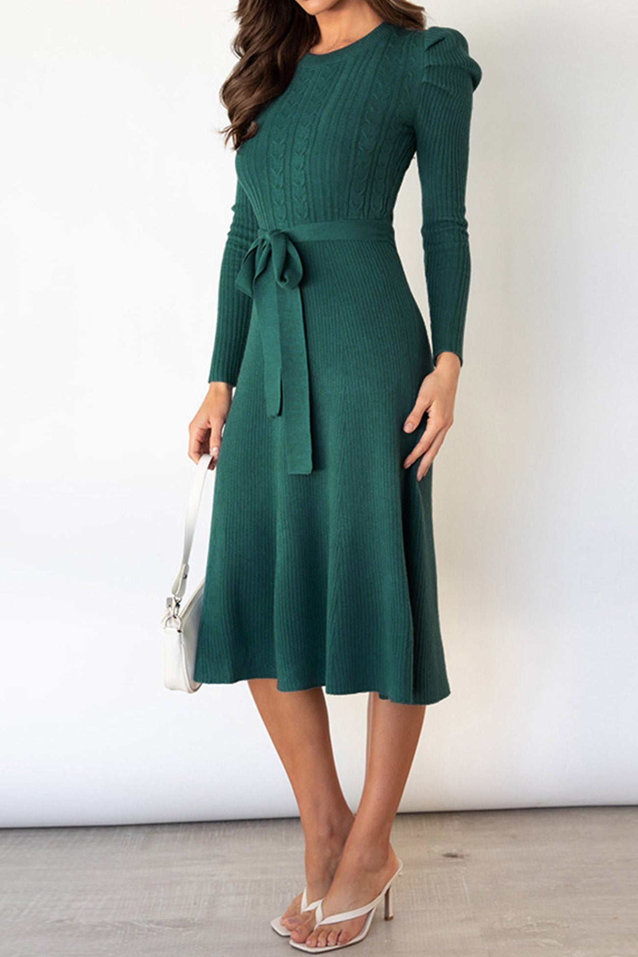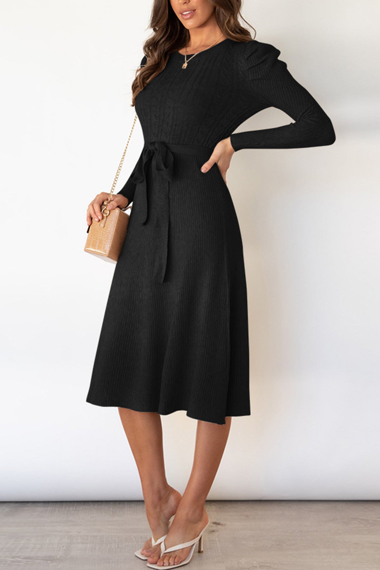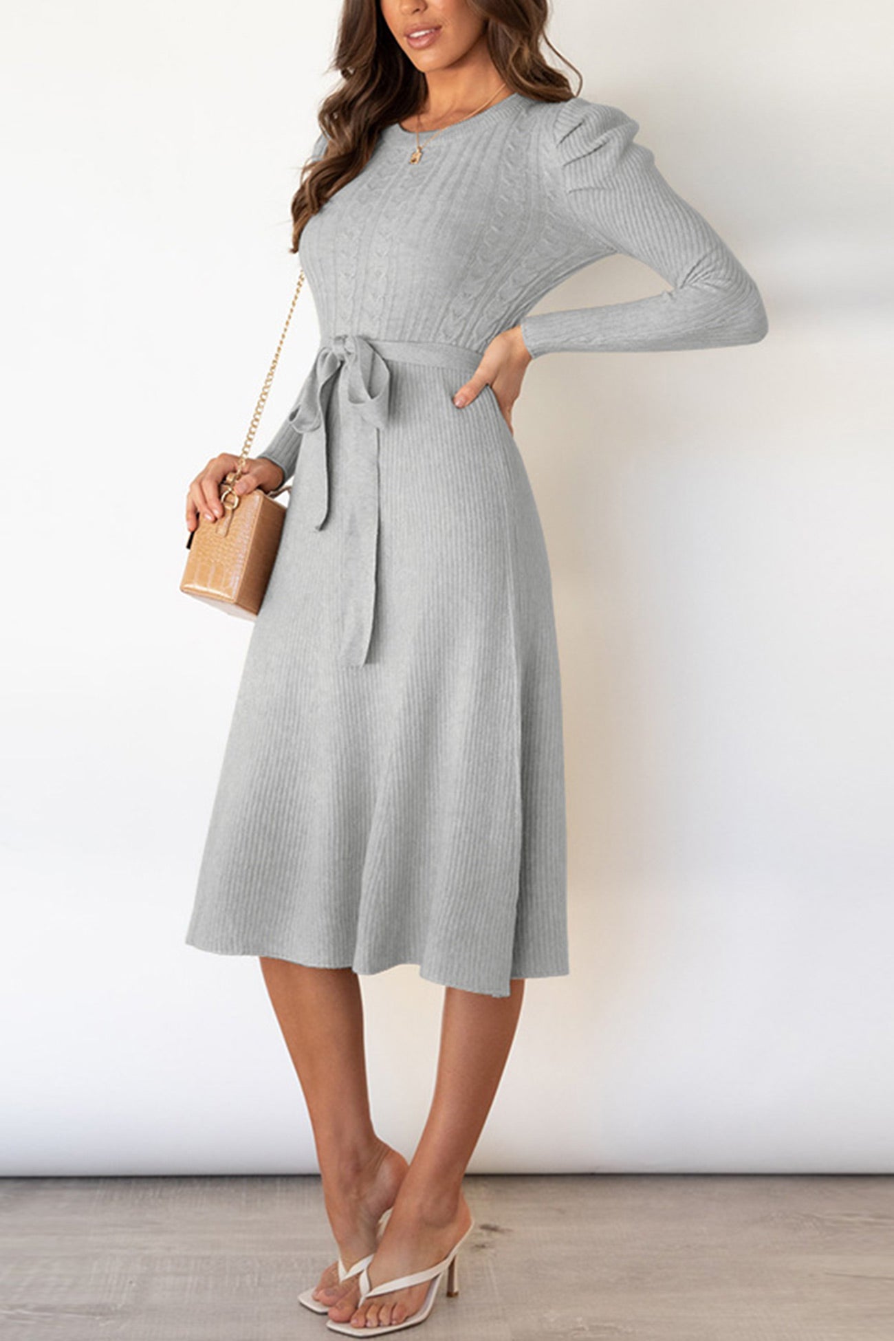 Puff Sleeve Tie-waist Knit Dress