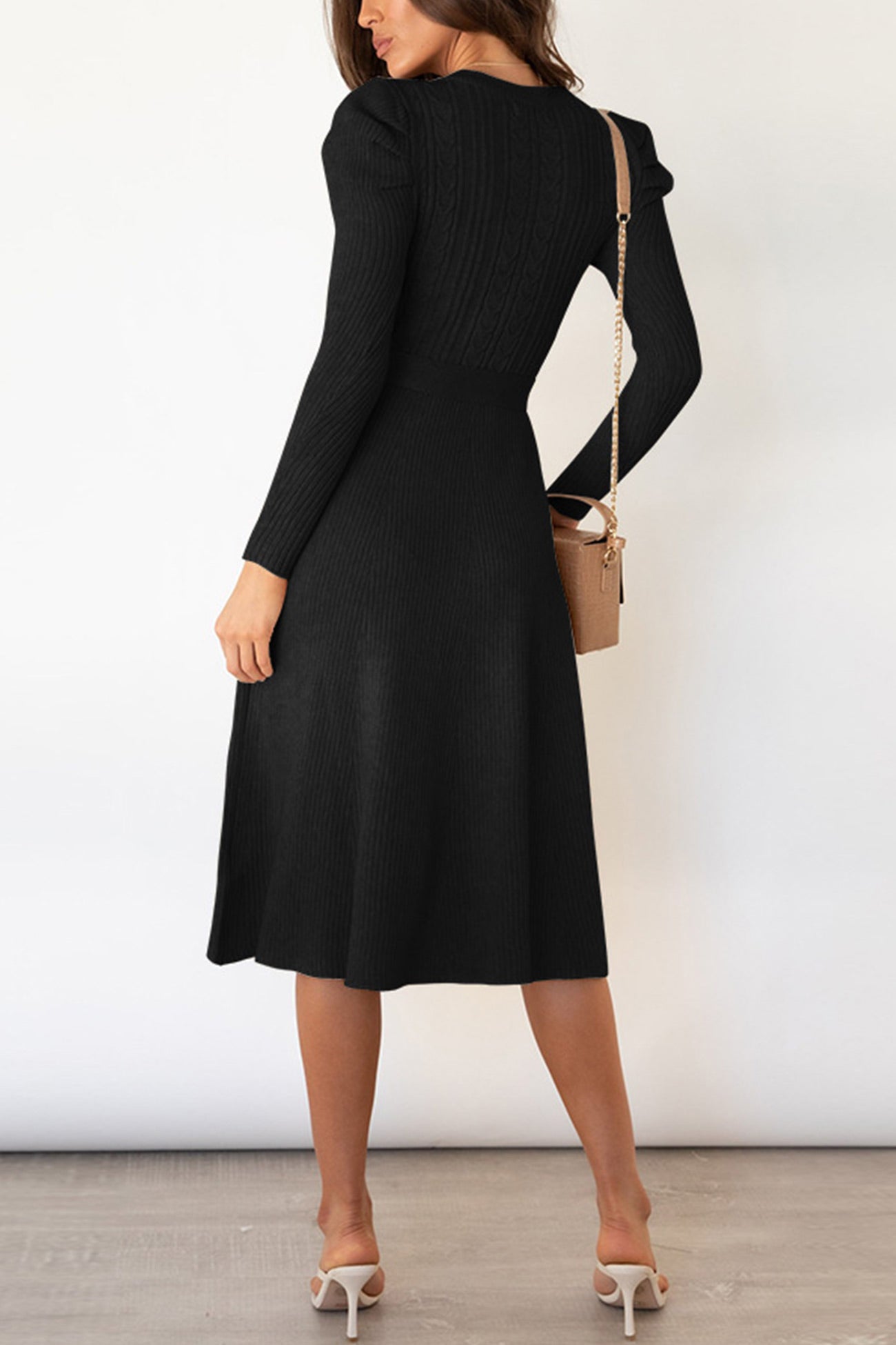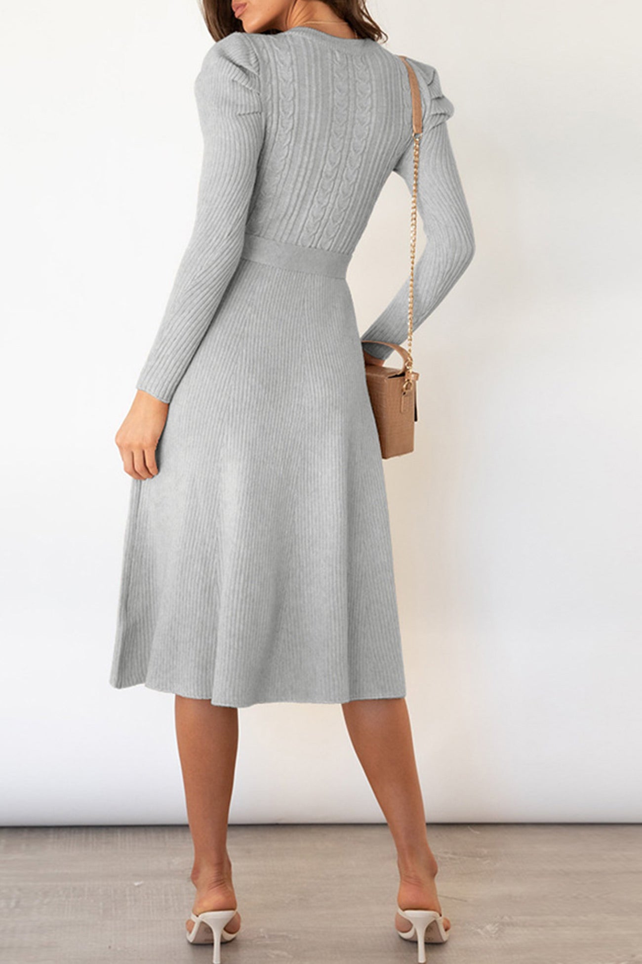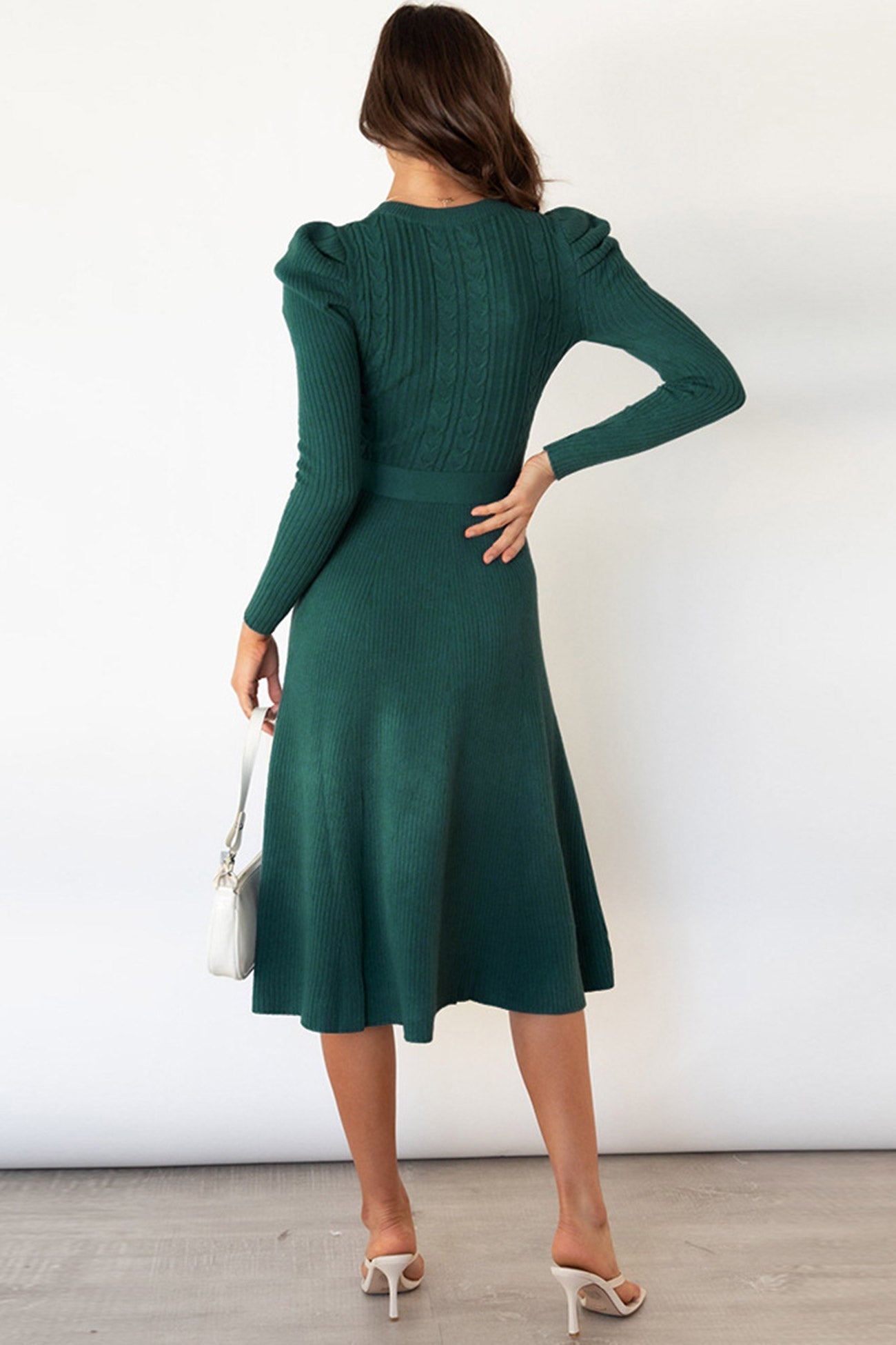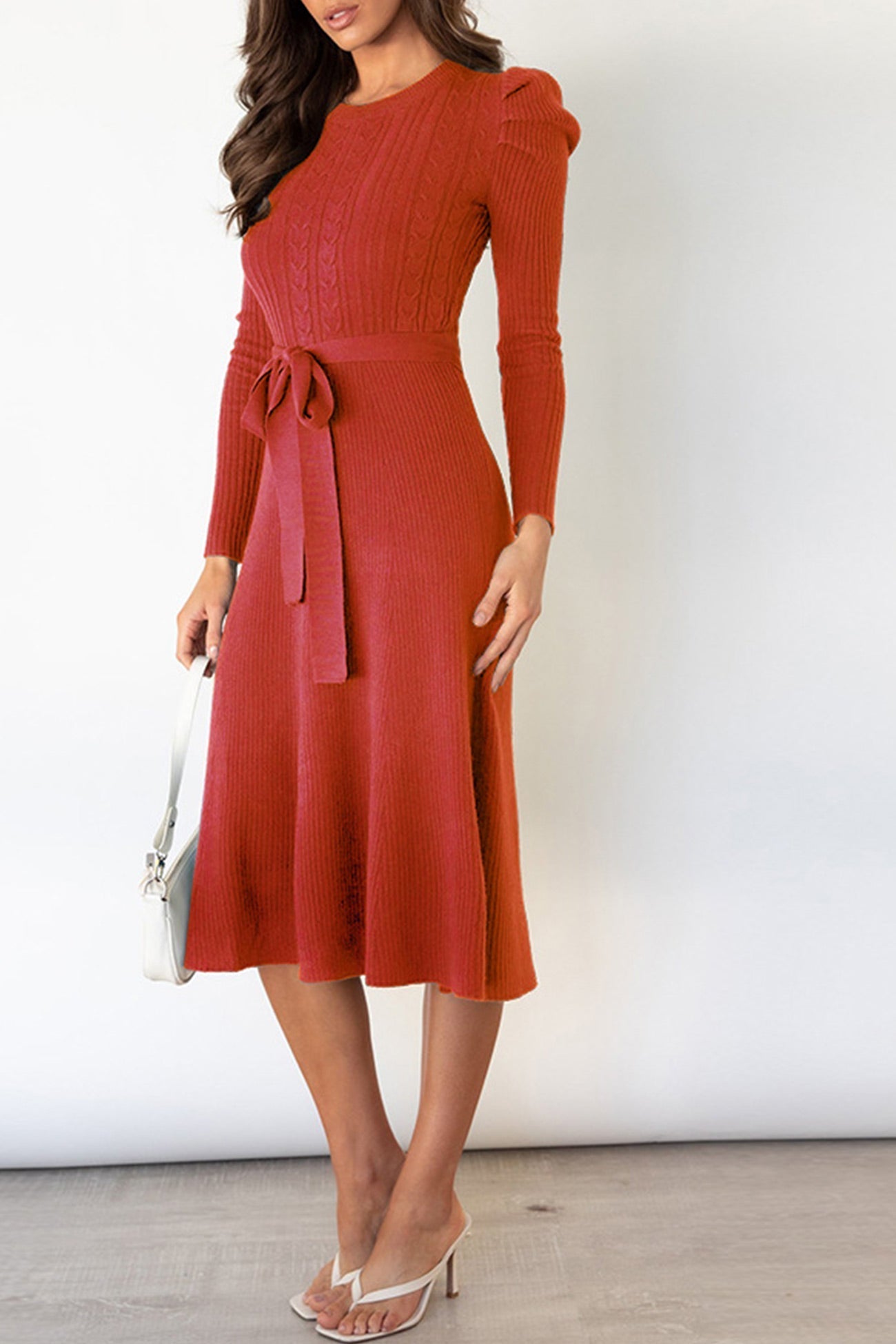 Puff Sleeve Tie-waist Knit Dress