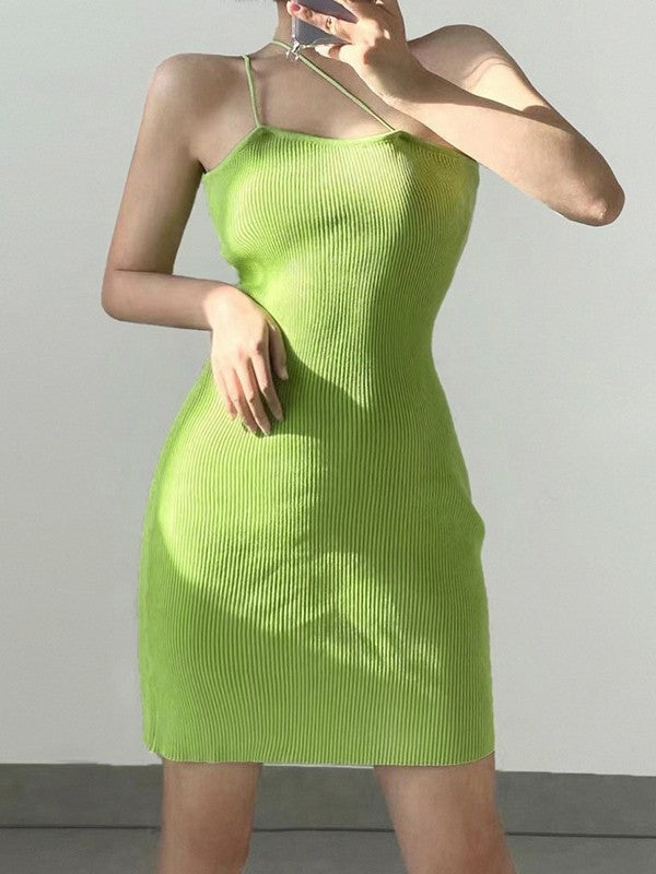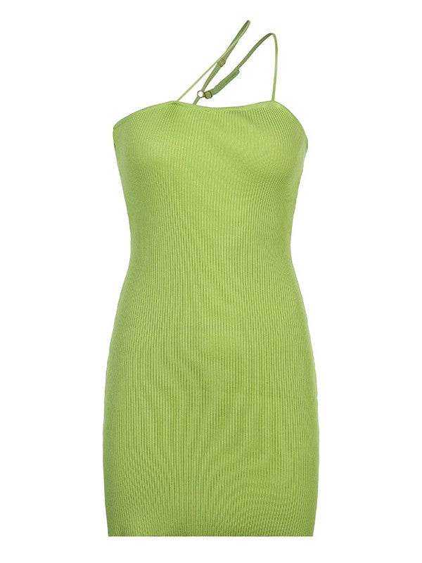 Description: This dress made from soft knit fabric. shaped to a bodycon fit. features adjustable slant shoulder straps design.