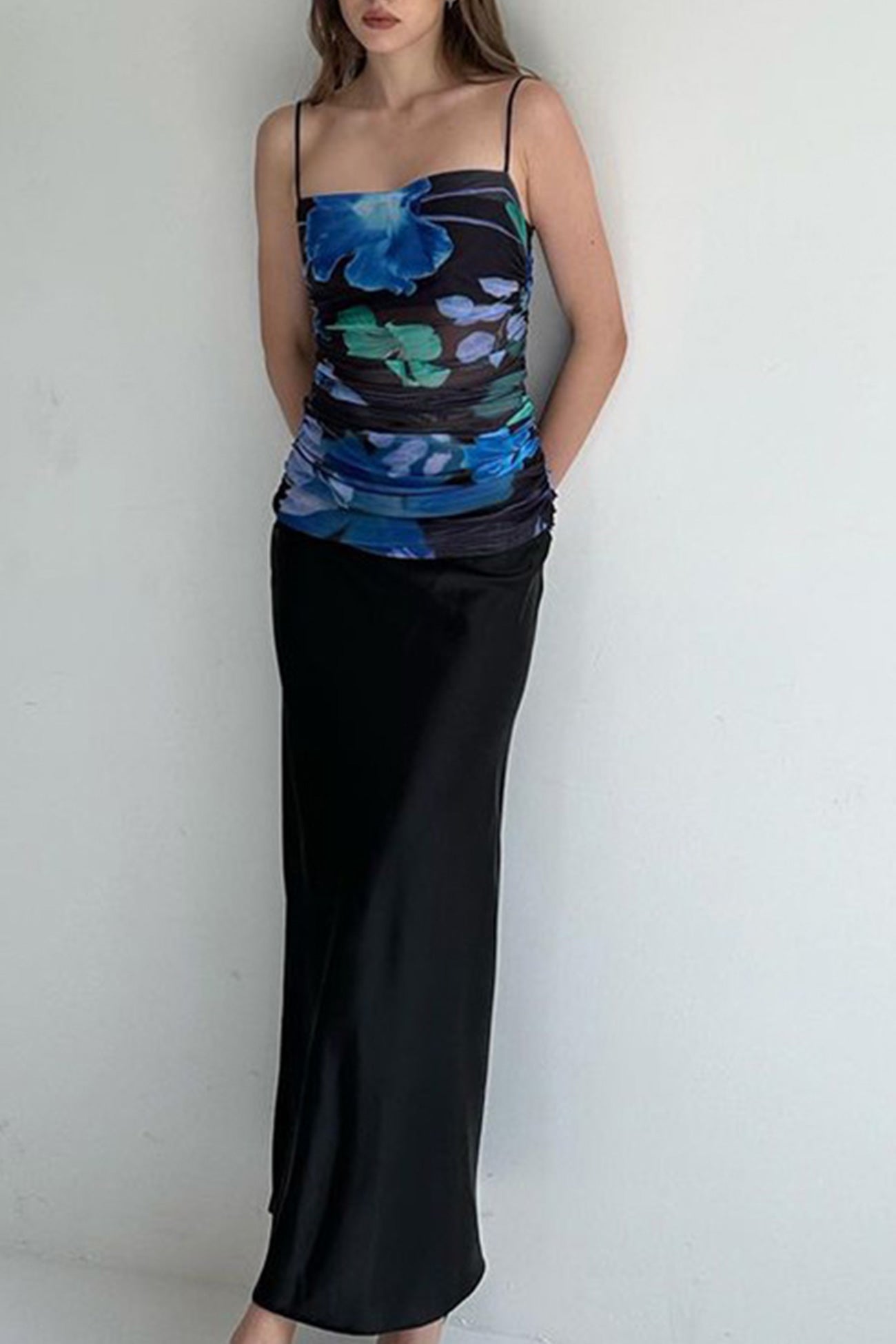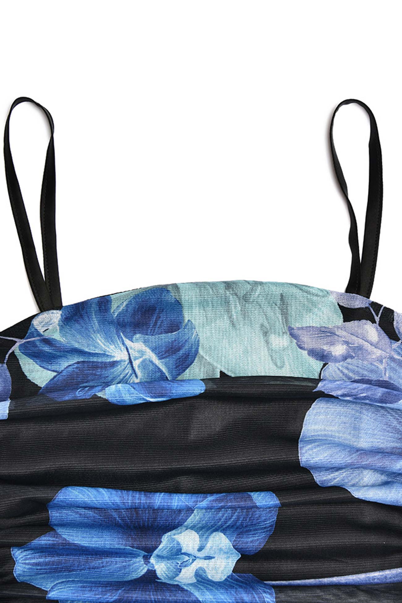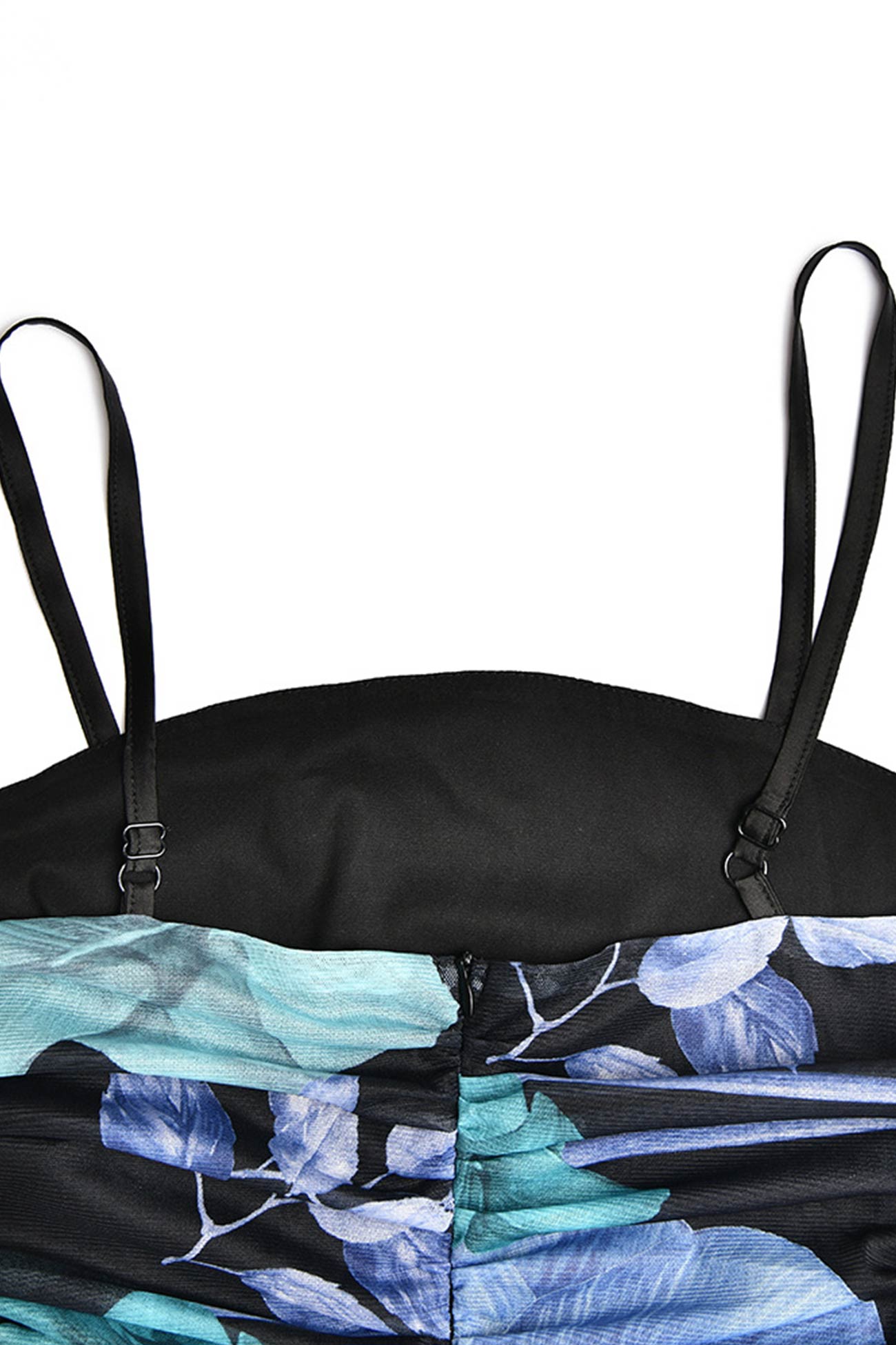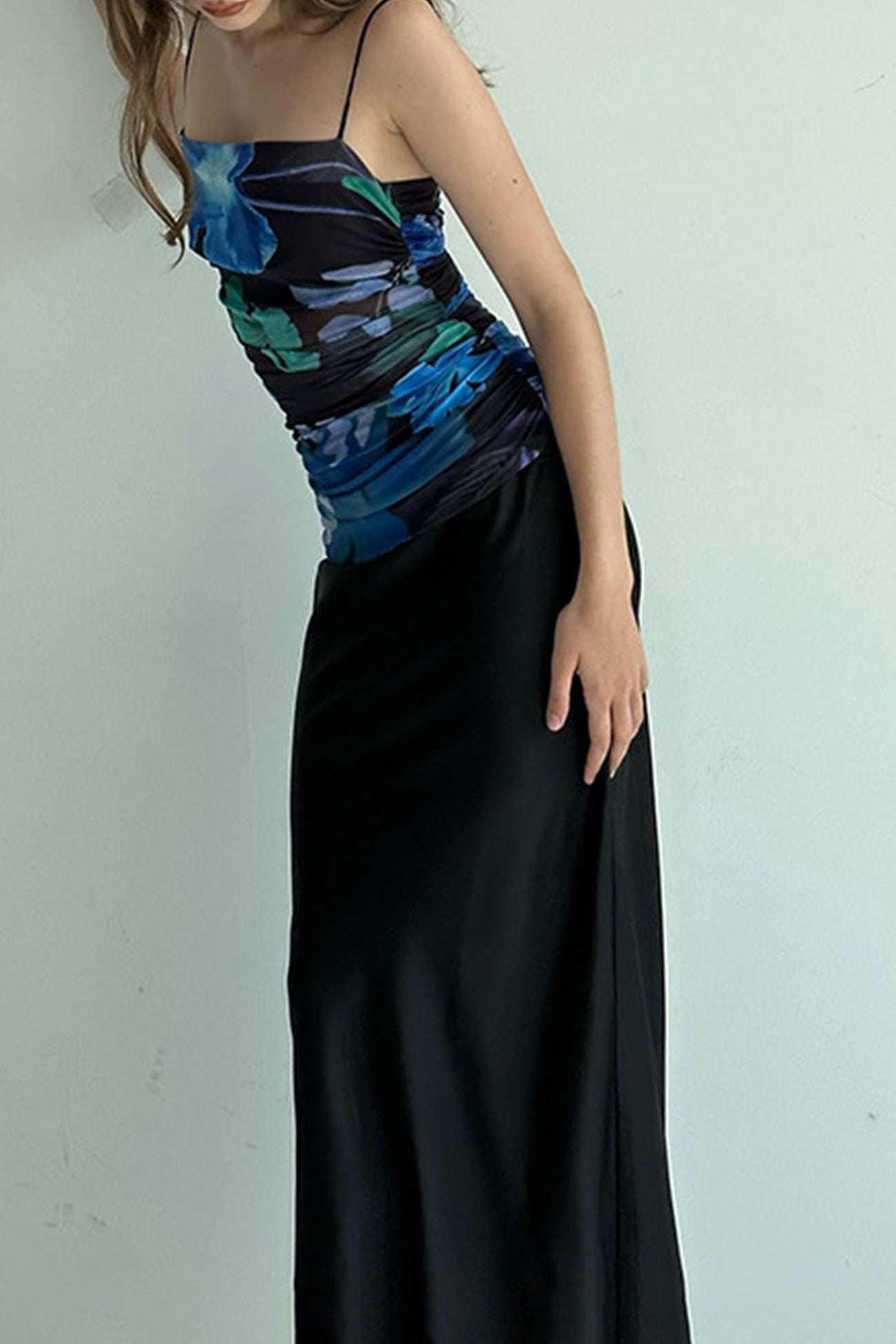 Vintage Floral Print Patchwork Ruched Cami Dress
