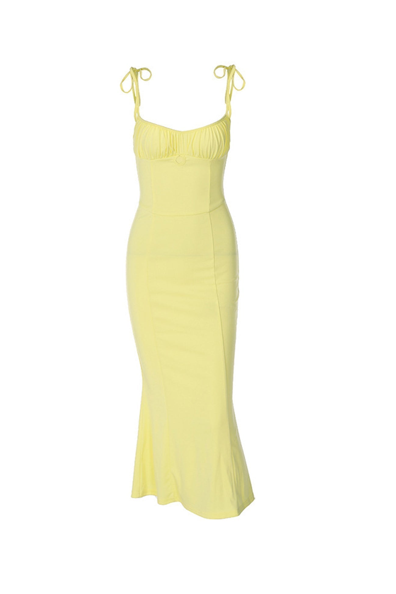 Yellow Tie-straps Pack Hip Fishtail Dress